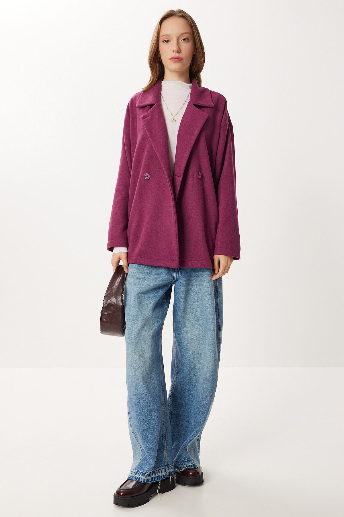 Oversize Kruvaze Kaşe Kaban LZV0038 KAHVERENGİ Oversize Kruvaze Kaşe Kaban LZV0038 KAHVERENGİ 42