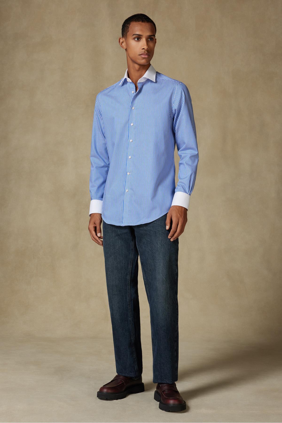 Grant Non Iron Twill Pamuklu Slim Fit Koyu Mavi Klasik Yaka Erkek Çizgili Gömlek Grant Non Iron Twill Pamuklu Slim Fit Koyu Mavi Klasik Yaka Erkek Çizgili Gömlek AMSH10024-001 2XL