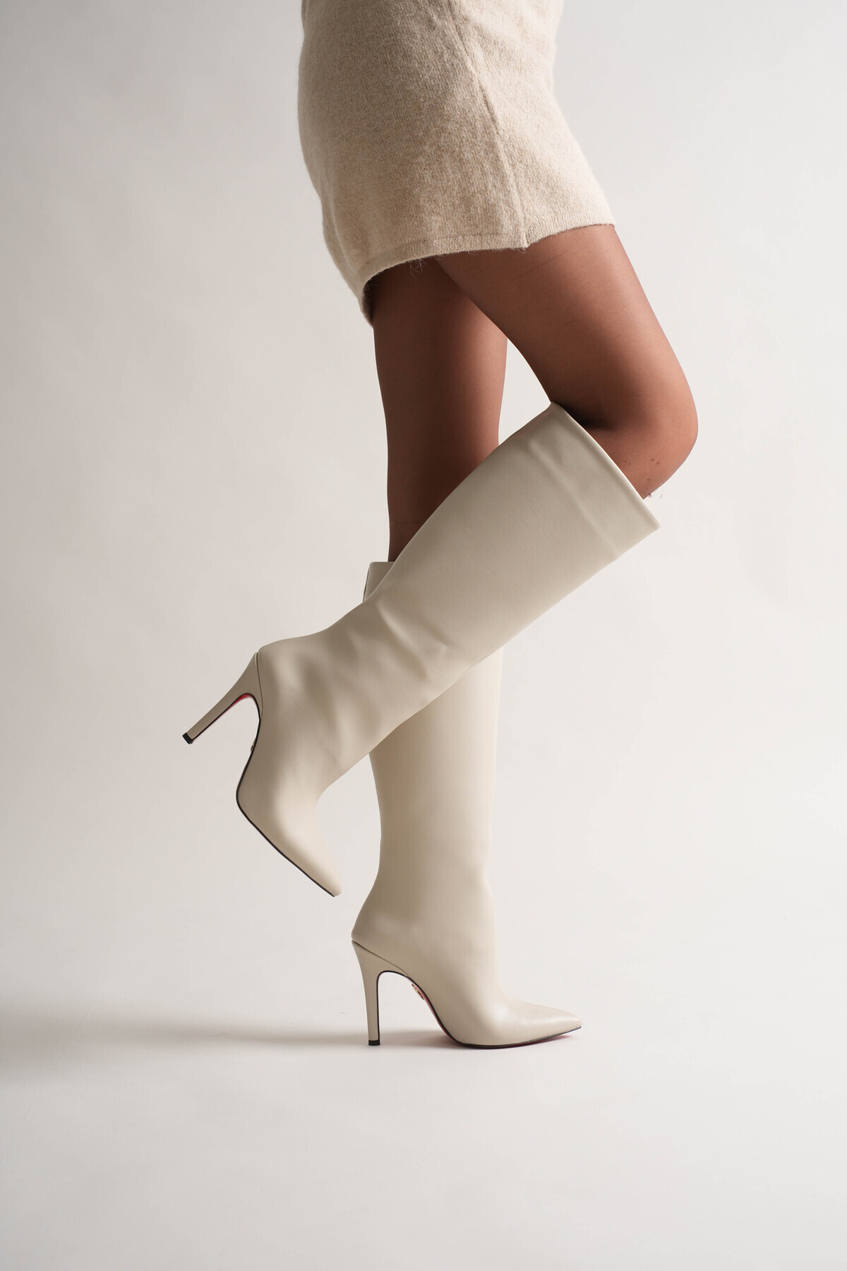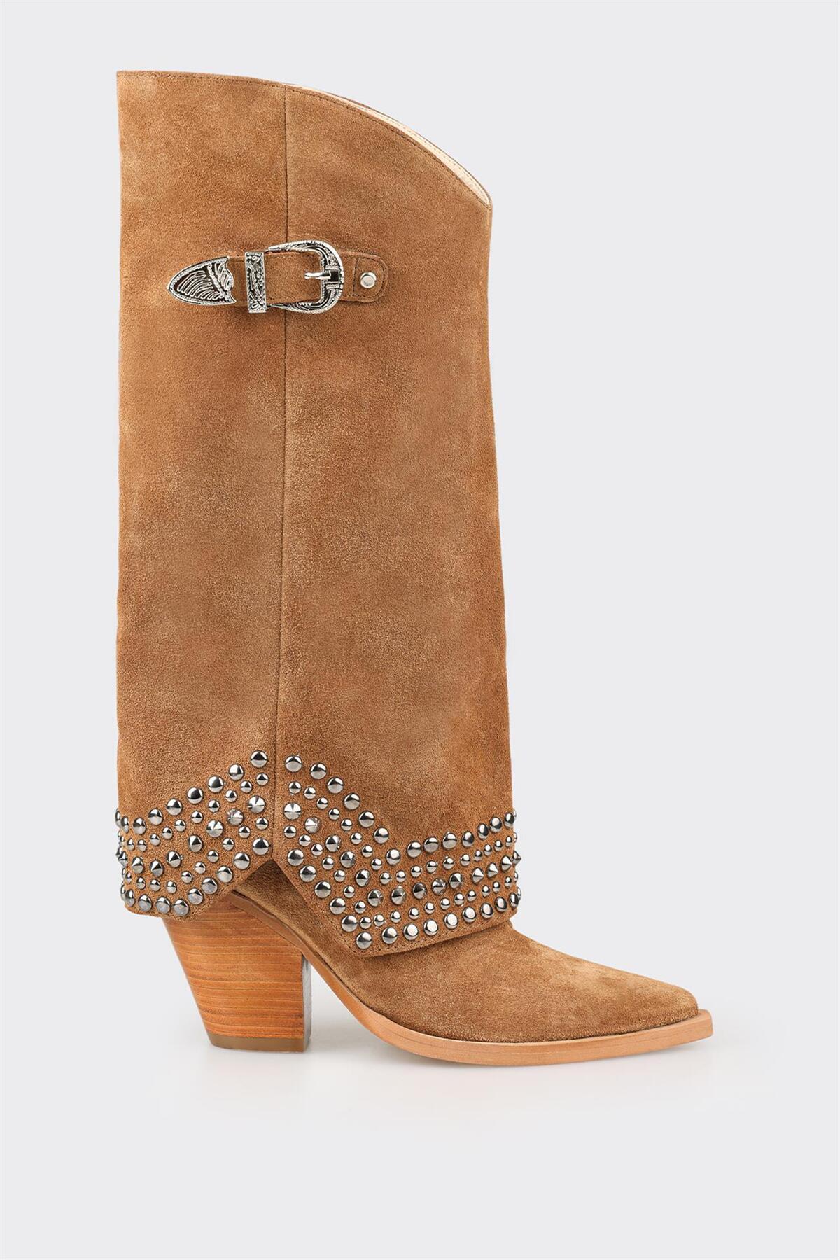 Kadın Sivri Burun Fermuarsız İnce Topuklu Diz Altı Çizme Monias Bej Dana Süet Kadın Sivri Burun Fermuarsız İnce Topuklu Diz Altı Çizme Monias Bej Dana Süet 2099-CEKME 40