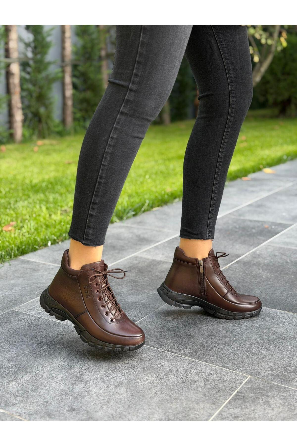 Kahve Deri Bağcıklı Kadın Günlük Bot Kahve Deri Bağcıklı Kadın Günlük Bot 24PL011-02 41