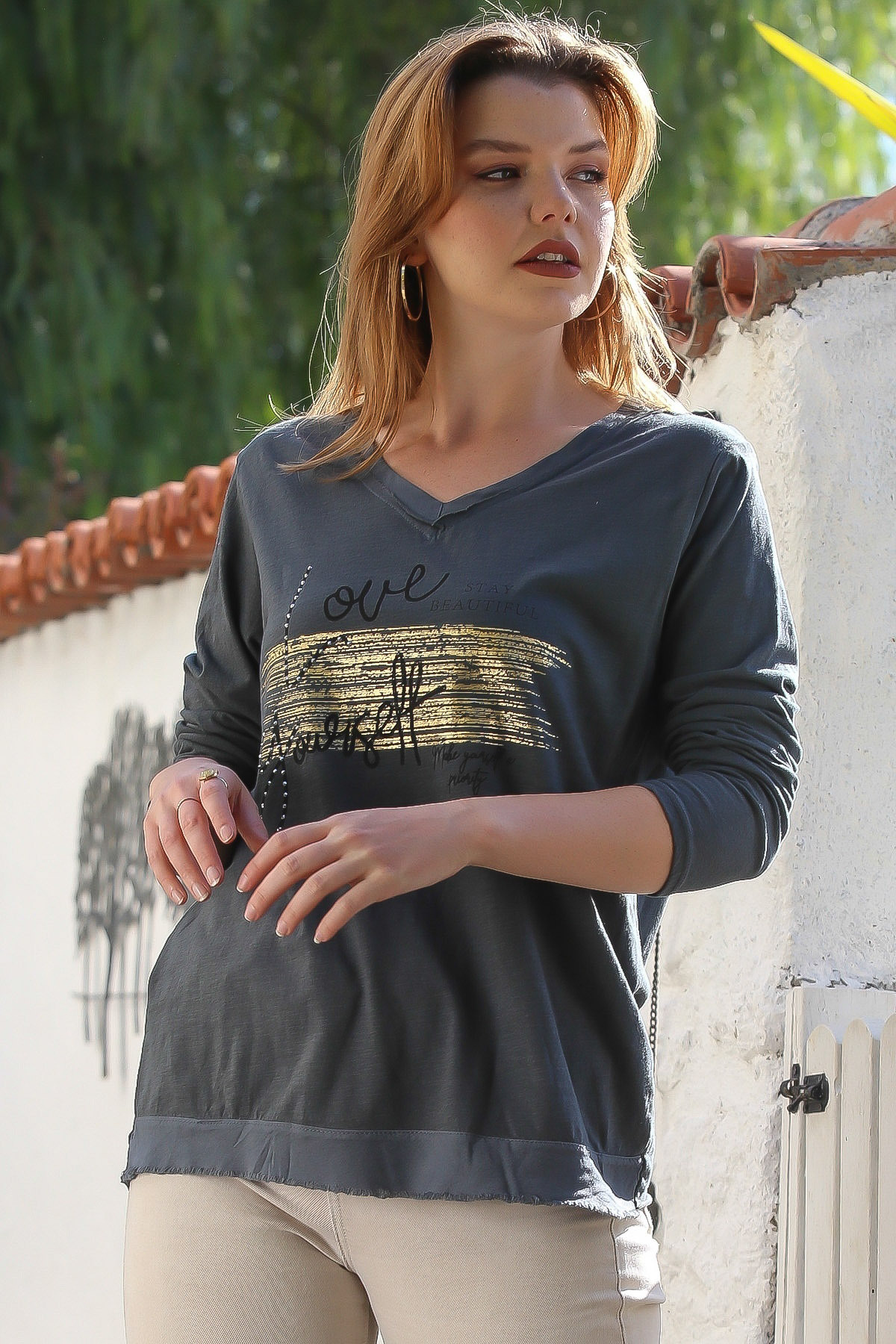 İtalyan Kırmızı V Yaka Uzun Kol Taşlı Dokuma Garnili Varak Baskılı Casual Penye Örme Bluz 70 60 İtalyan Kırmızı V Yaka Uzun Kol Taşlı Dokuma Garnili Varak Baskılı Casual Penye Örme Bluz 70 60 M10010200BL91042 Standart
