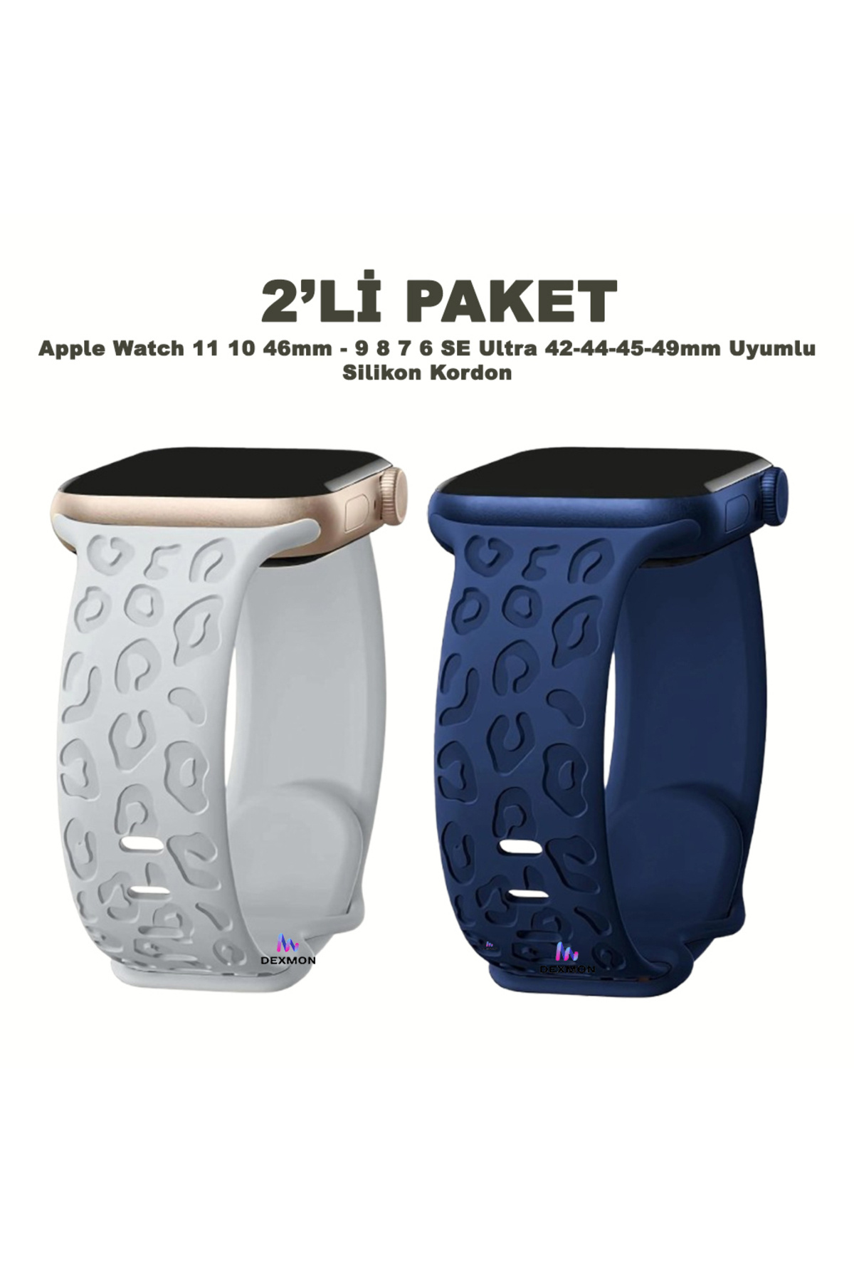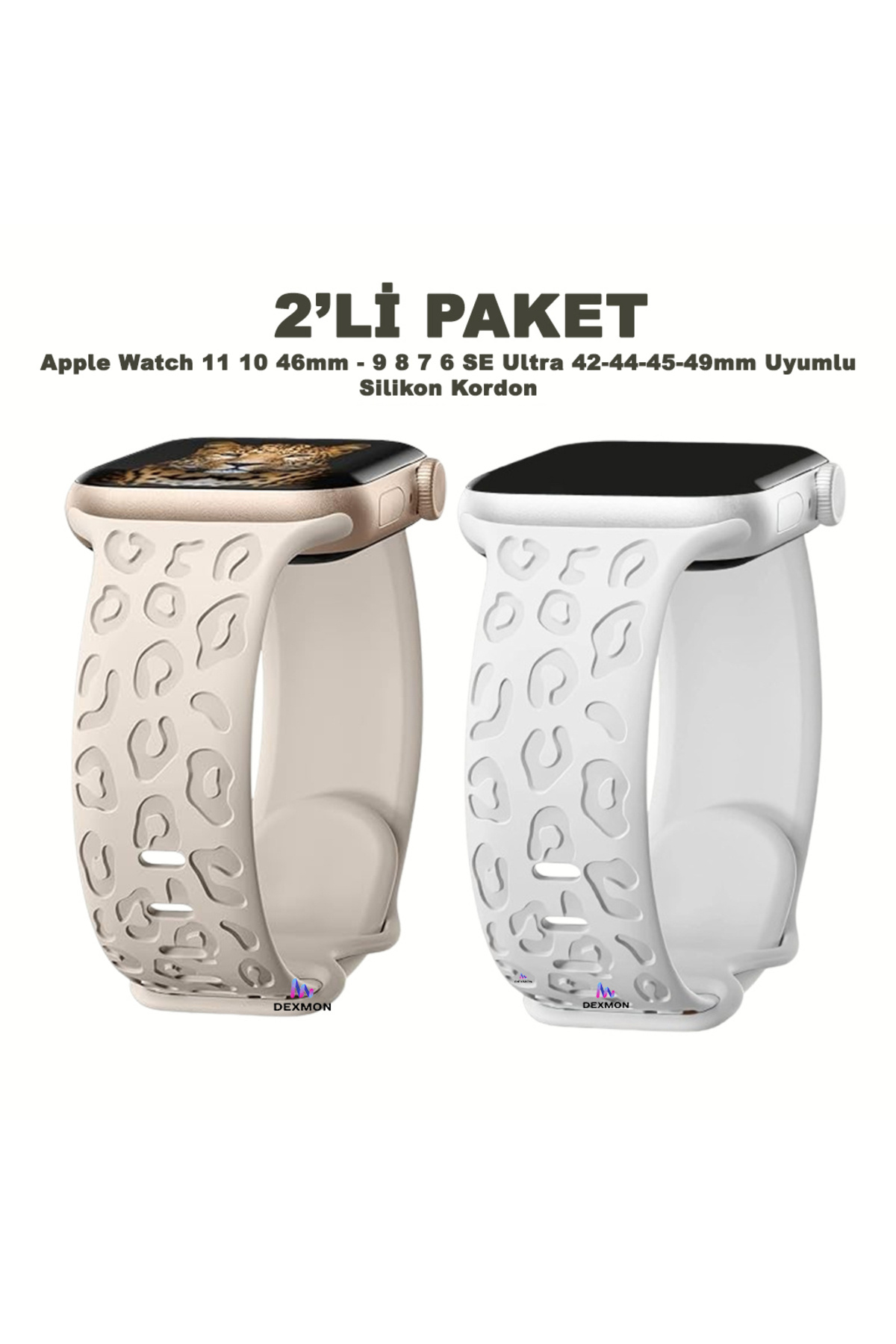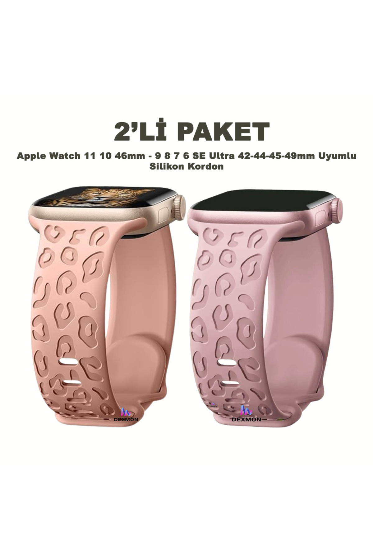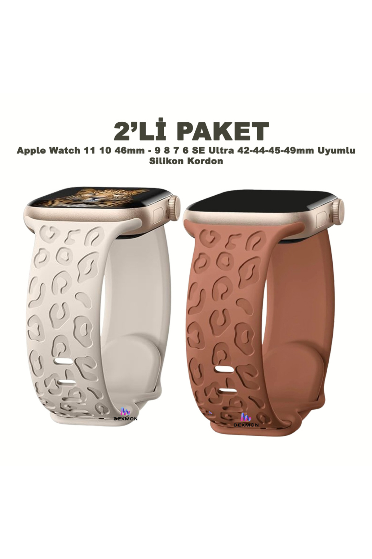 Apple Watch 11 10 46mm 9 8 7 6 SE Ultra Uyumlu 42-44-45-49mm Leopar Desenli 2'li Silikon Kordon Seti Apple Watch 11 10 46mm 9 8 7 6 SE Ultra Uyumlu 42-44-45-49mm Leopar Desenli 2'li Silikon Kordon Seti 49mm-leopar2li تک سایز