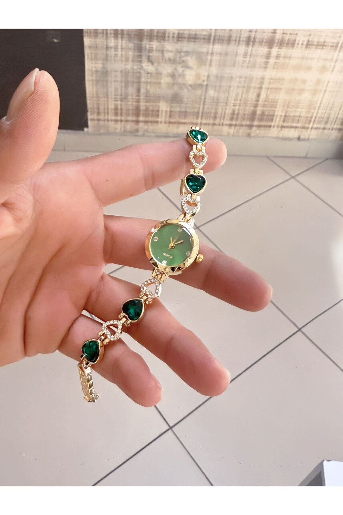 Gold İçi Yeşil Kalpli Kordon Kadın Kol Saati Gold İçi Yeşil Kalpli Kordon Kadın Kol Saati MB0119 تک سایز