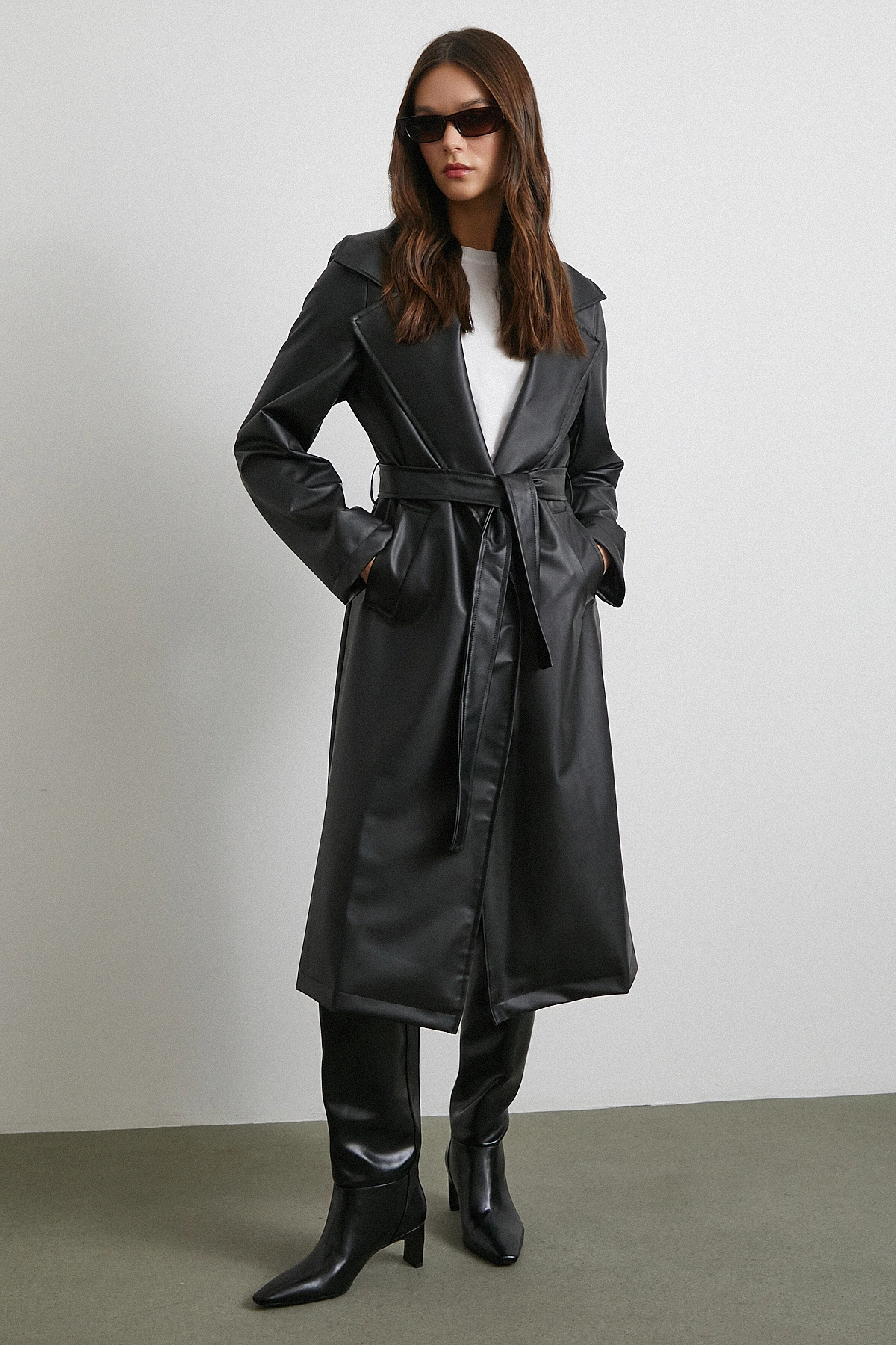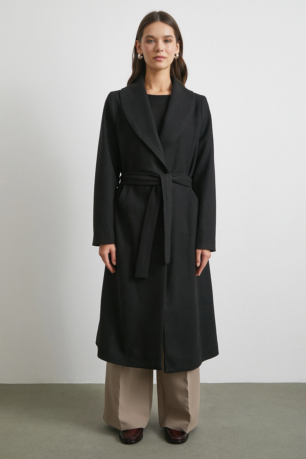 Kuşaklı Kaşe Kaban Siyah Kuşaklı Kaşe Kaban Siyah ENT25W350102 L