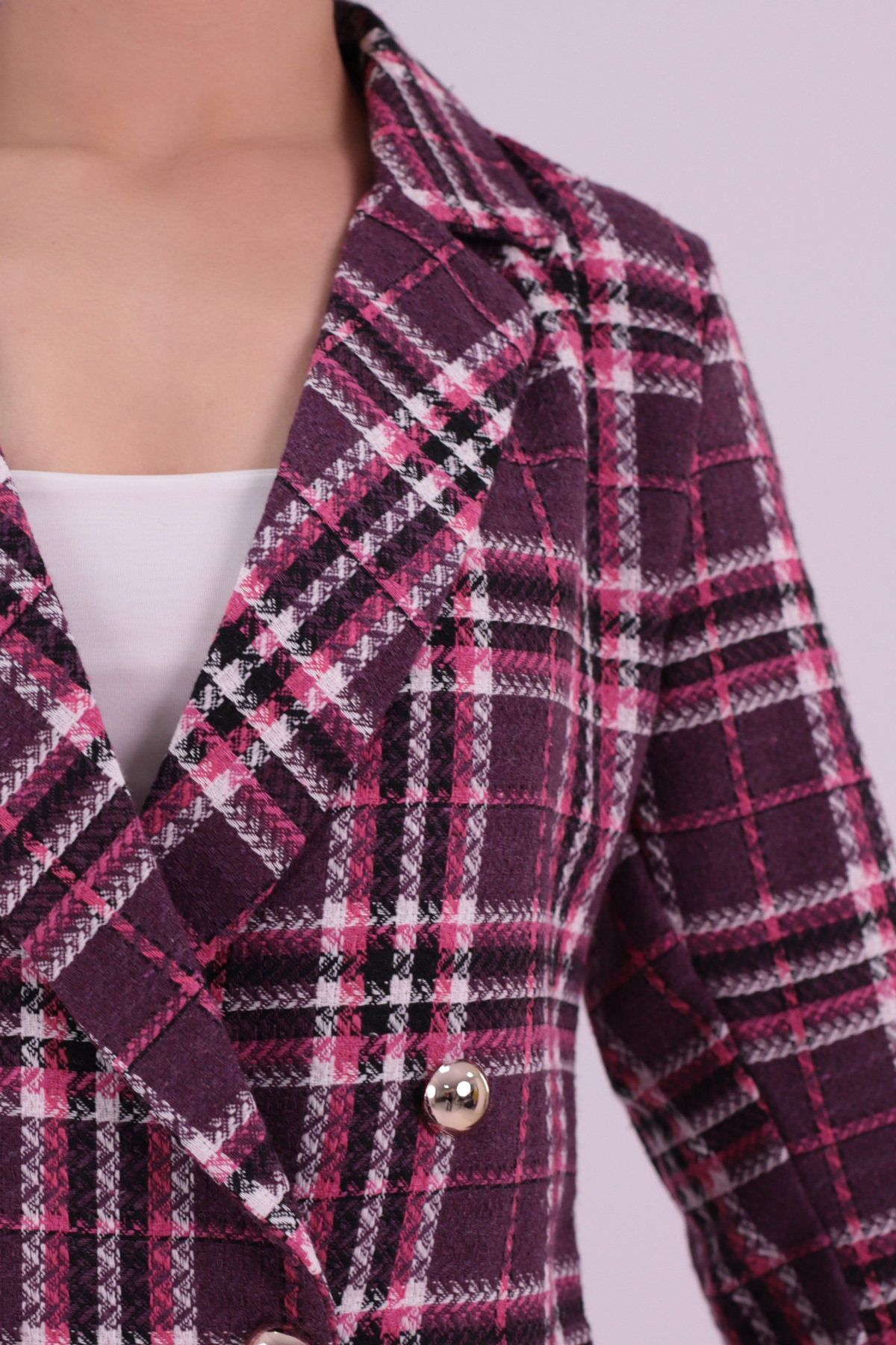 Kadın Fuşya-Beyaz Kruvaze Yaka Tüvit Crop Ceket ARM-24K001014 Kadın Fuşya-Beyaz Kruvaze Yaka Tüvit Crop Ceket ARM-24K001014 XL