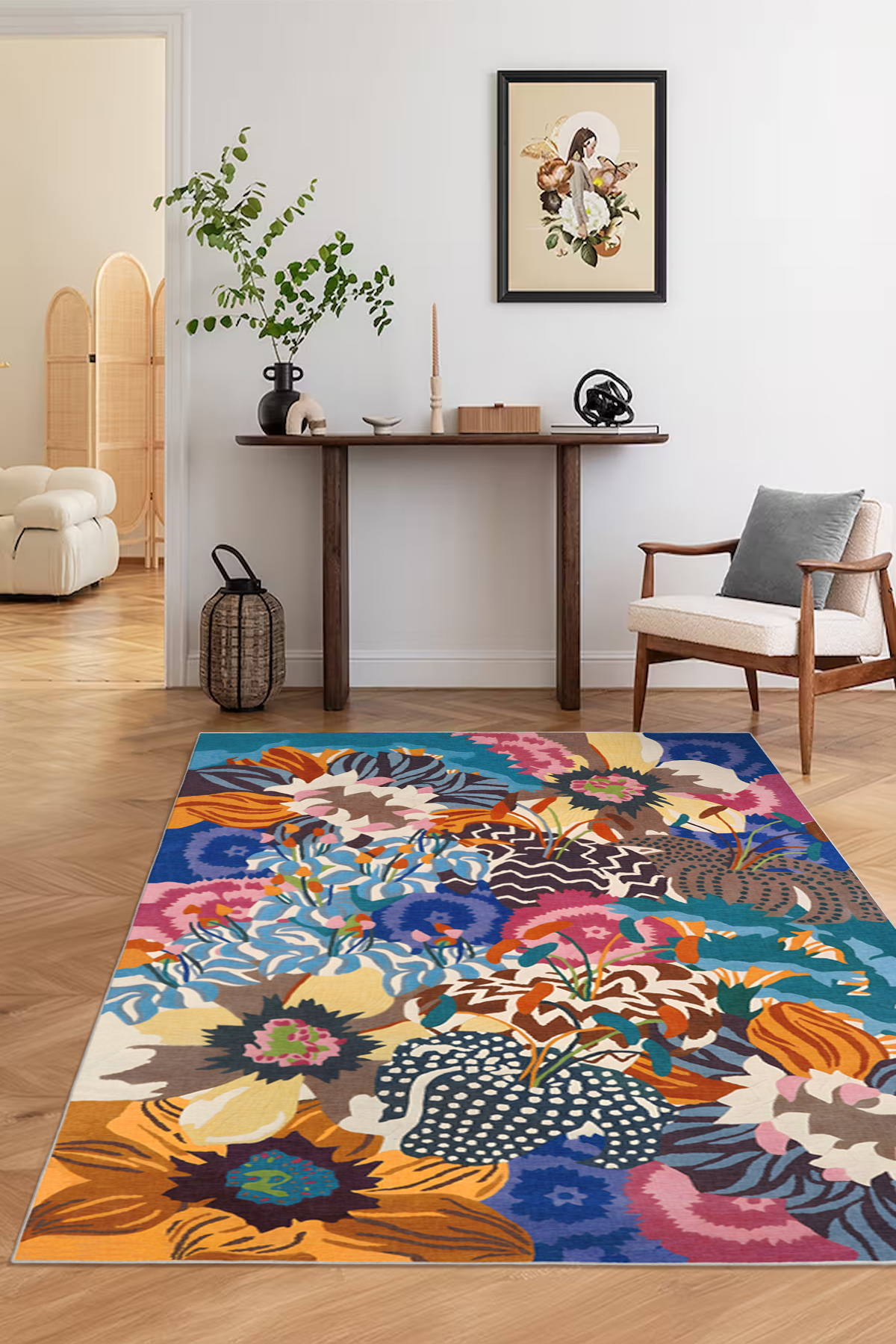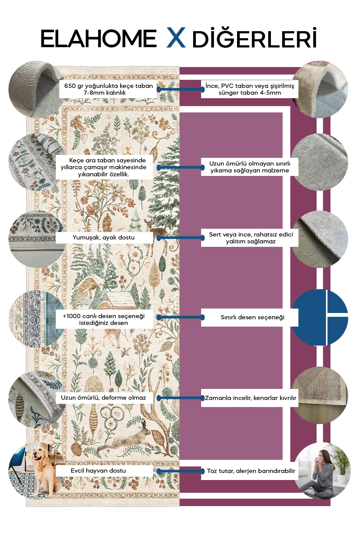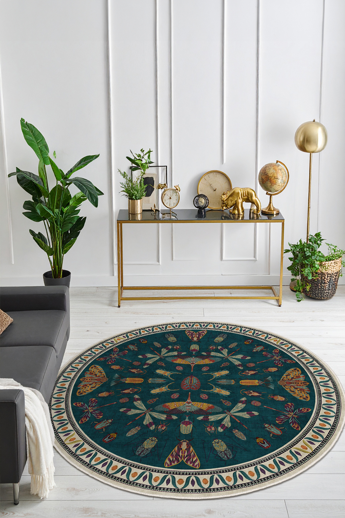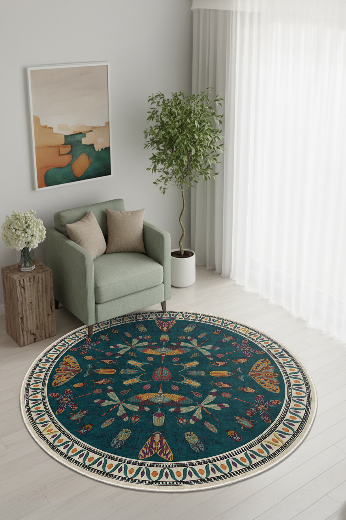 Makinede Yıkanabilir Kaymaz Taban Yuvarlak Salon Halısı - Bej Yeşil EL-65 Makinede Yıkanabilir Kaymaz Taban Yuvarlak Salon Halısı - Bej Yeşil EL-65 180 x 180