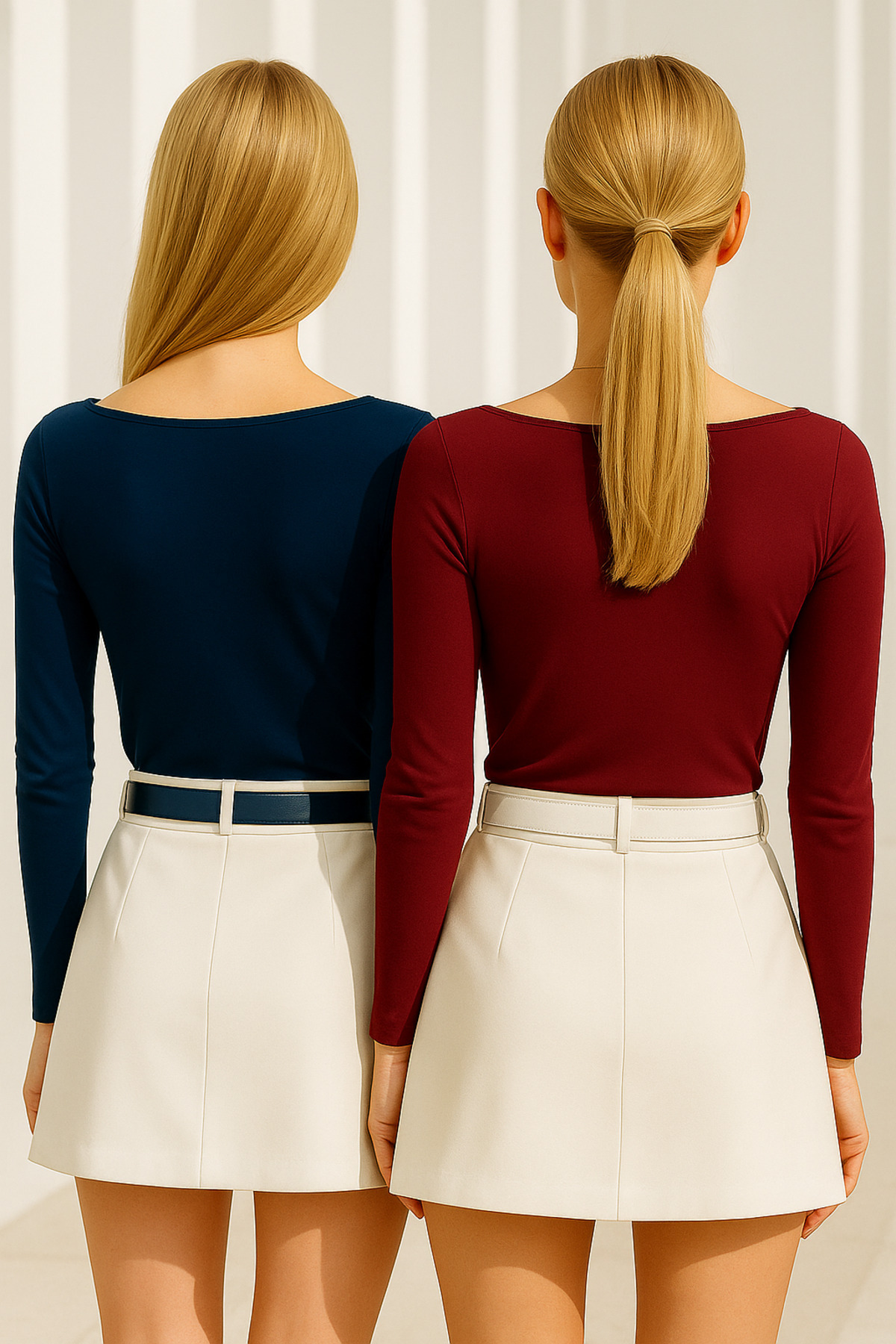 Kadın Bordo-Lacivert 2'li Paket Kayık Yaka Uzun Kollu Bluz Kadın Bordo-Lacivert 2'li Paket Kayık Yaka Uzun Kollu Bluz RKBLZ-1 XL