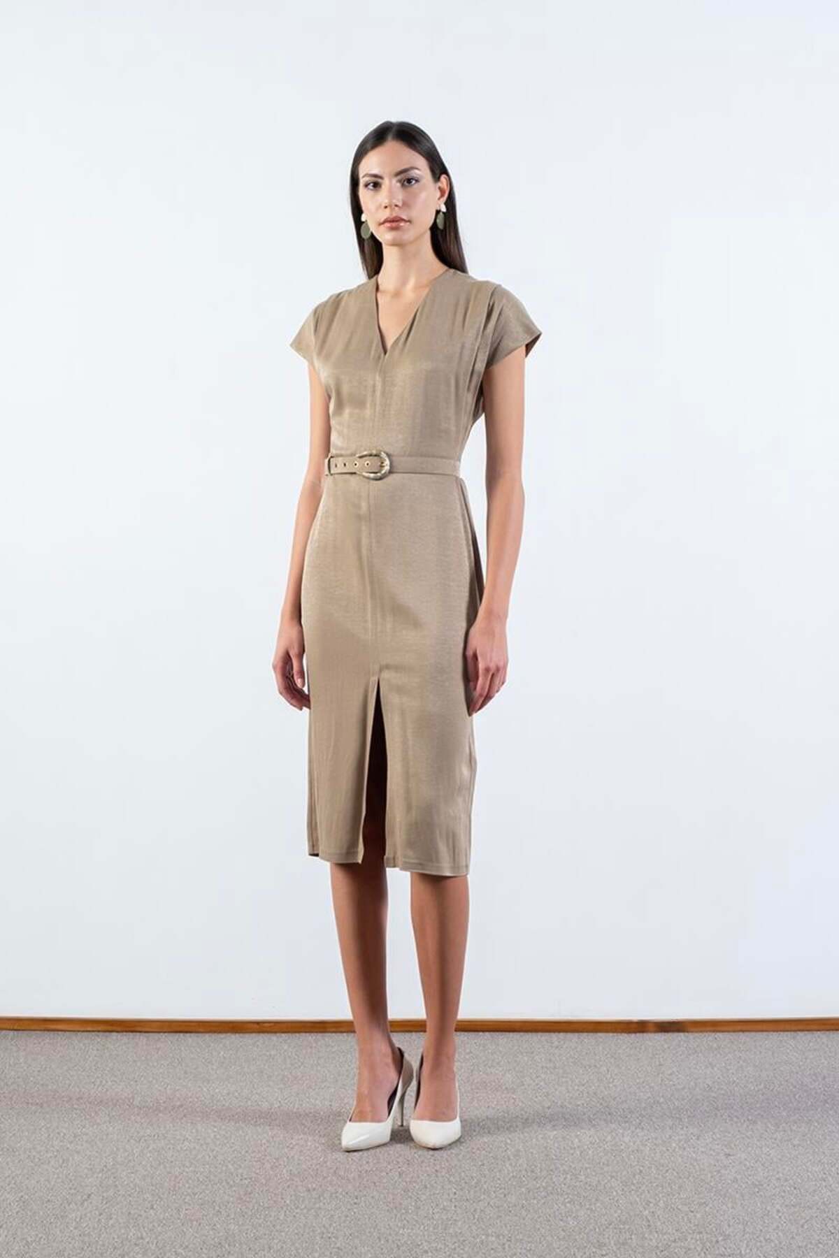 Tigerman V Yaka Fermuarlı Önde Yırtmaçlı Kemerli Elbise SİYAH Tigerman V Yaka Fermuarlı Önde Yırtmaçlı Kemerli Elbise SİYAH 51000353 42