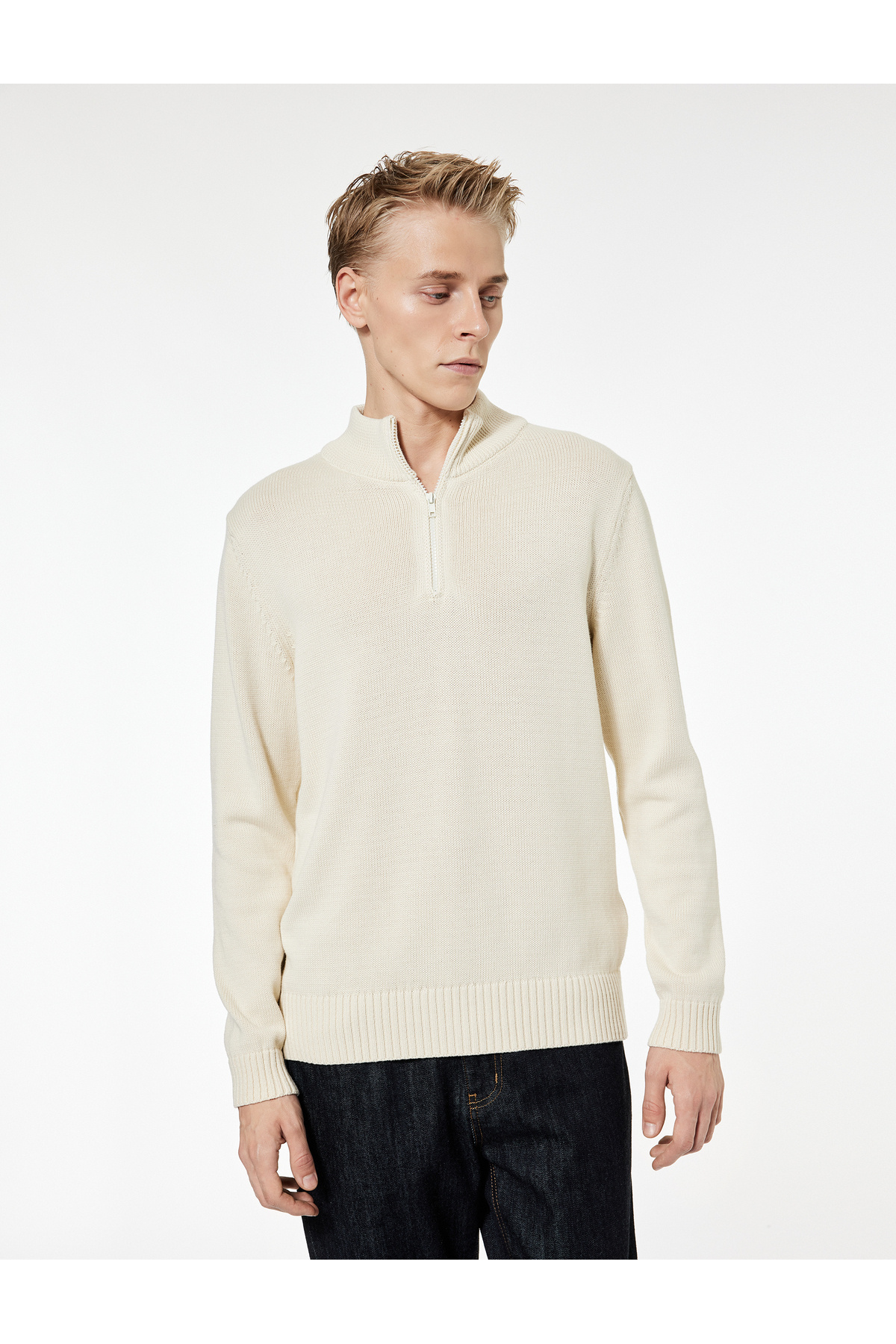 Pamuklu Uzun Kollu Yarım Fermuarlı Triko Kazak Pamuklu Uzun Kollu Yarım Fermuarlı Triko Kazak TYCE977F6D72C382C2D779100 XL