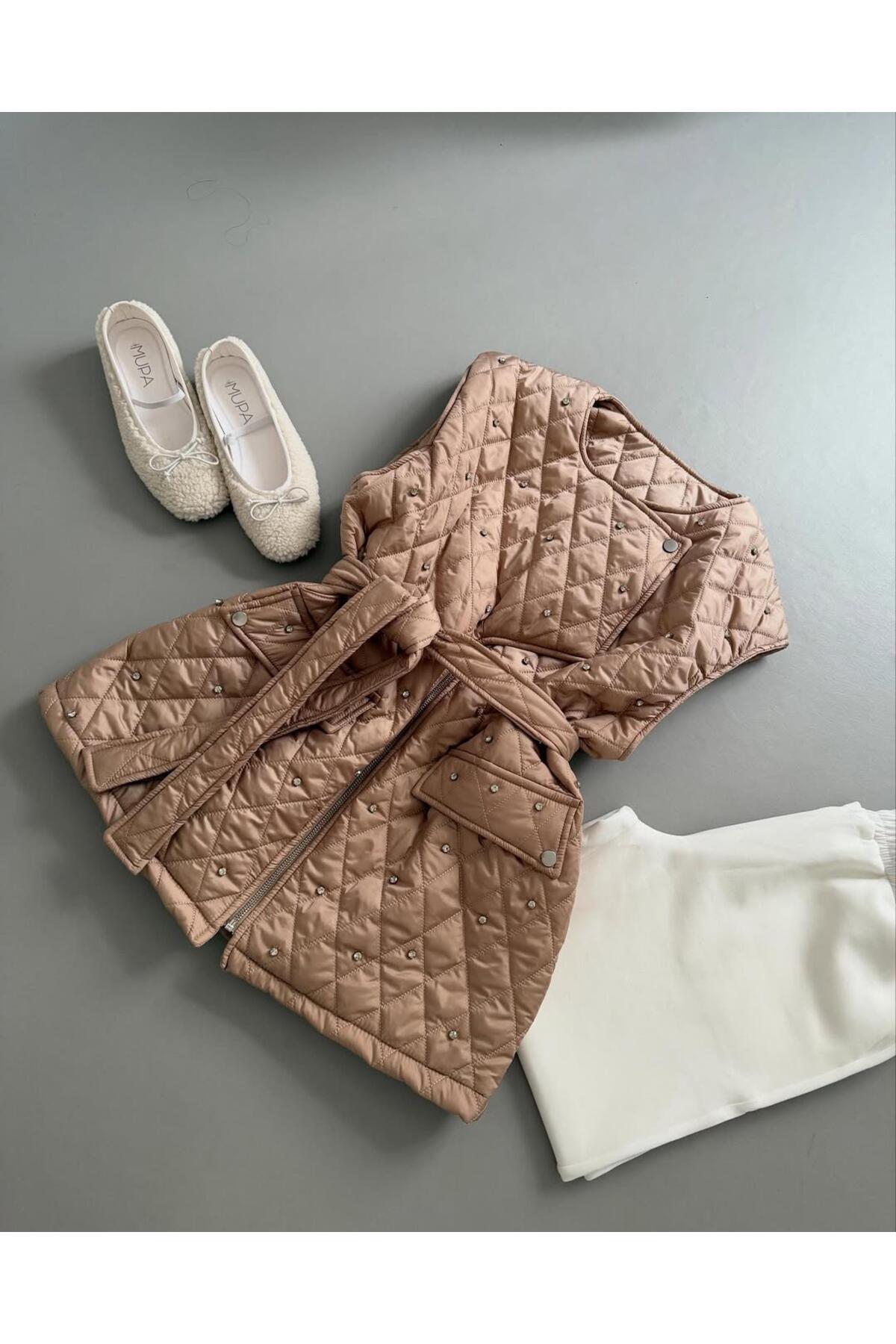Kadın Taş Detaylı Kapitone Yelek Taba Kadın Taş Detaylı Kapitone Yelek Taba 266-3034 L/XL