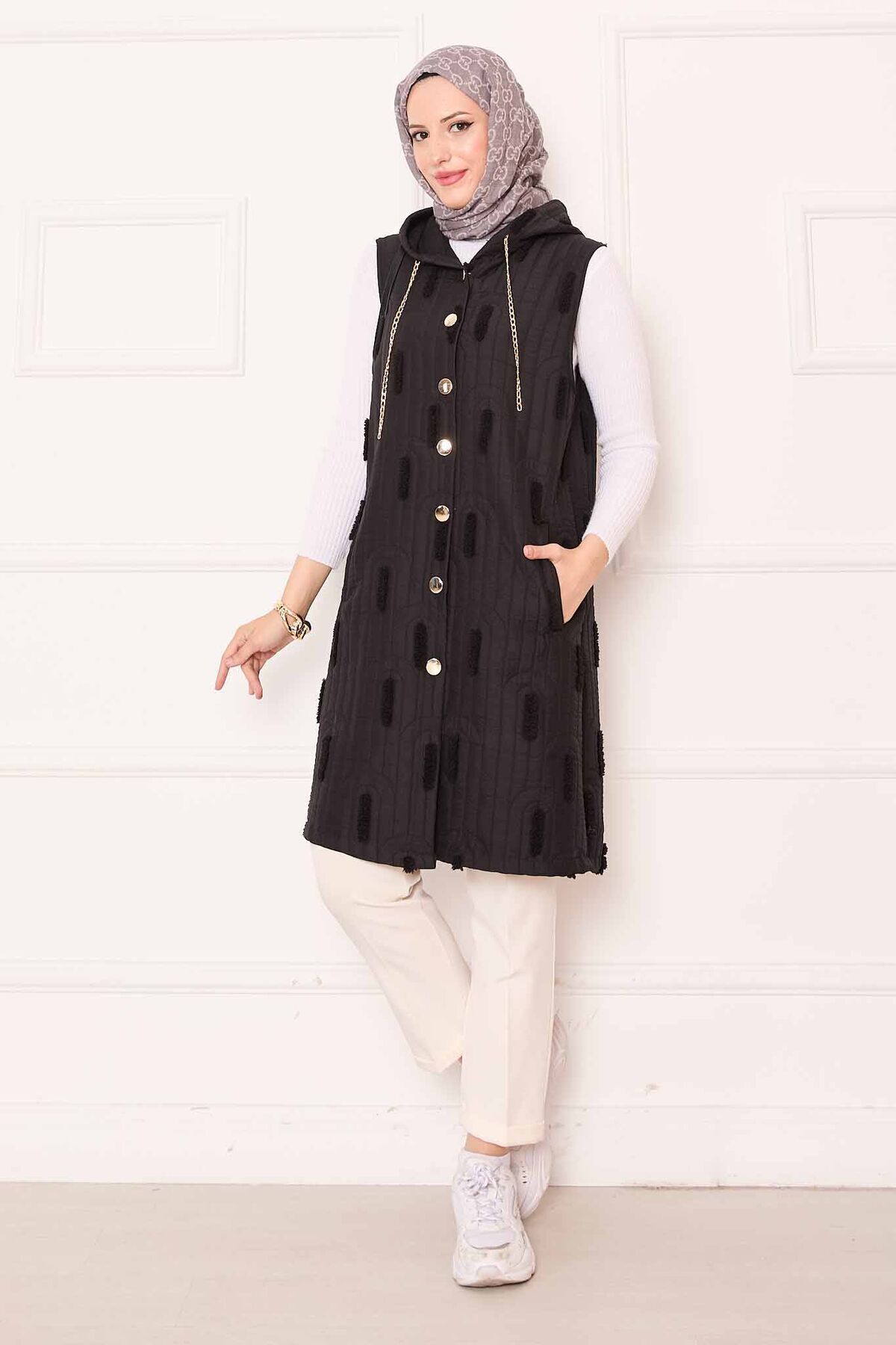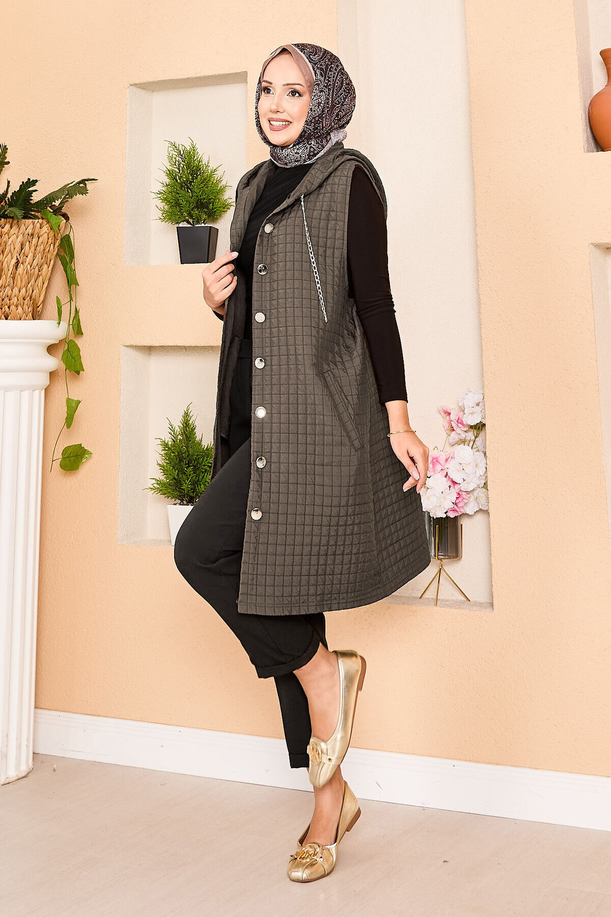 Kapüşonlu Gold Düğme Detaylı Kapitone Yelek Kapüşonlu Gold Düğme Detaylı Kapitone Yelek 553528-125M00920790 42