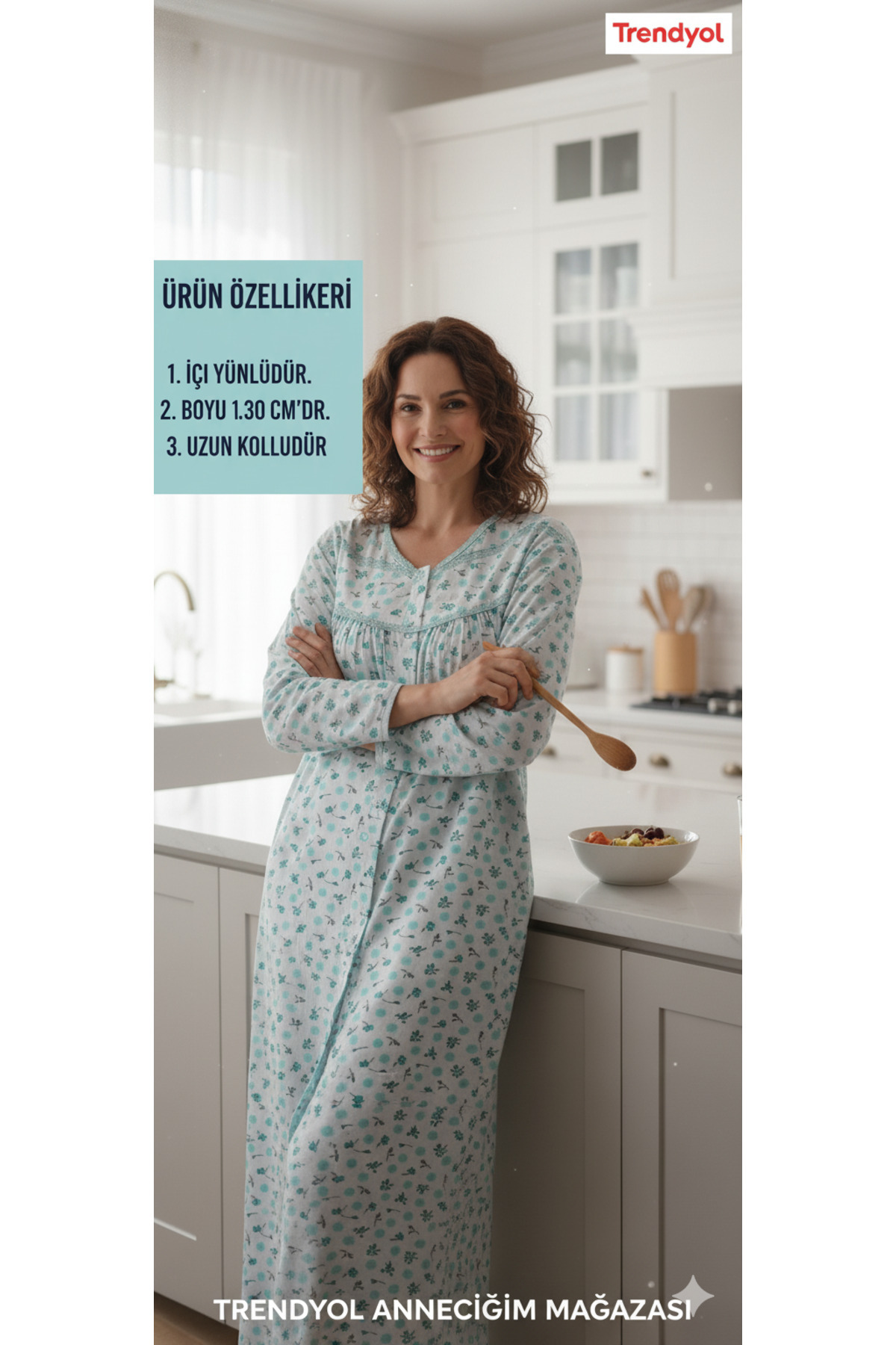 Anne Geceliği, Gül Desenli İçi Yünlü Boydan Uzun Kollu Anne Geceliği Anne Geceliği, Gül Desenli İçi Yünlü Boydan Uzun Kollu Anne Geceliği annegeceliği111 3XL