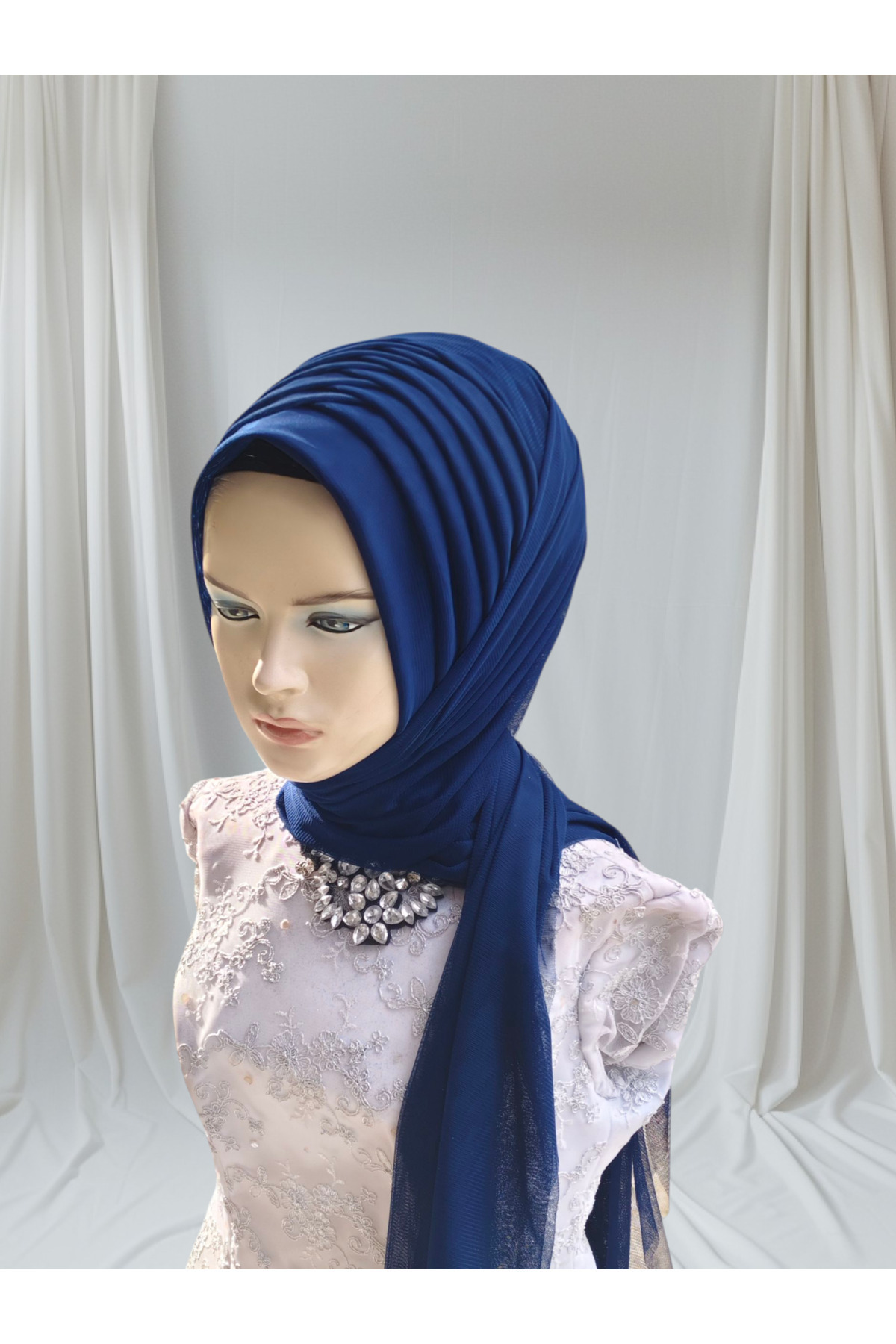 Açık lacivert esnek kumaş tektek hazır duvak hazır şal hazır türban Açık lacivert esnek kumaş tektek hazır duvak hazır şal hazır türban açıklaci 70 x 42