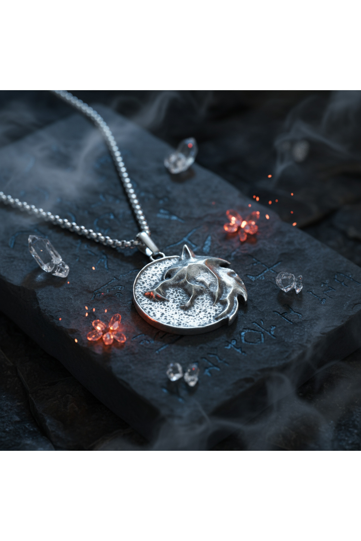 Witcher 3 Madalyon Gümüş Kaplama Örme Zincir Kolye Witcher 3 Madalyon Gümüş Kaplama Örme Zincir Kolye 1015 60 cm