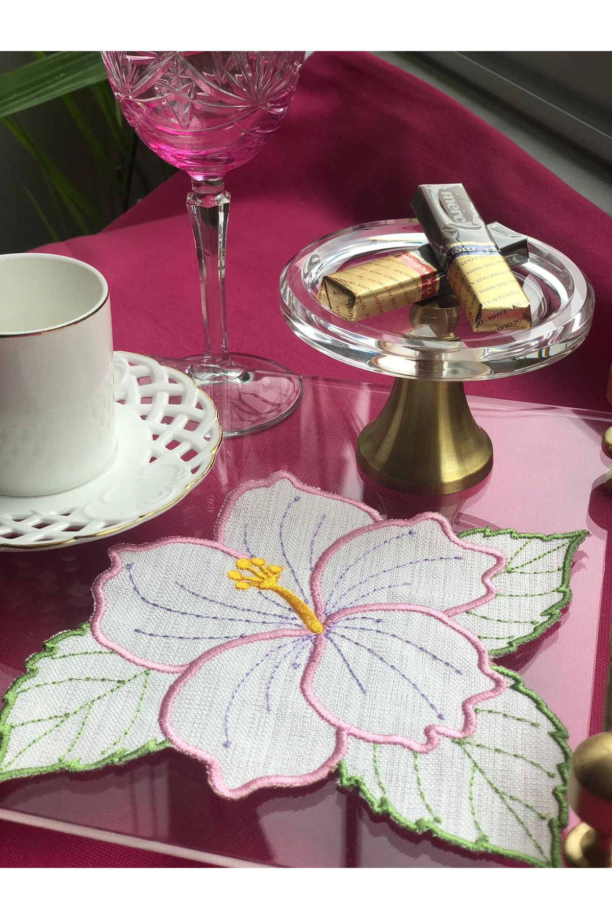 2 Adet Şeker Pembe Çiçek Nakışlı Sunum ve Kokteyl Peçetesi 2 Adet Şeker Pembe Çiçek Nakışlı Sunum ve Kokteyl Peçetesi P12688S2147 تک سایز