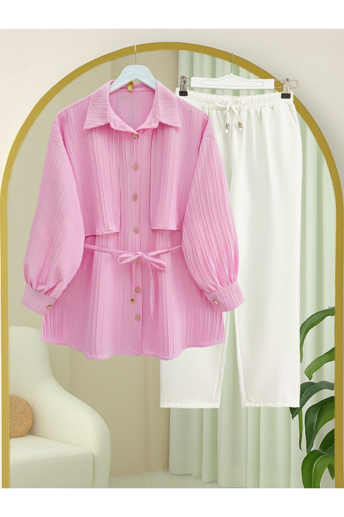 Beli Bağlamalı Bolero Detaylı Taşlı Düğmeli Gömlek Beli Bağlamalı Bolero Detaylı Taşlı Düğmeli Gömlek MR299921722 42