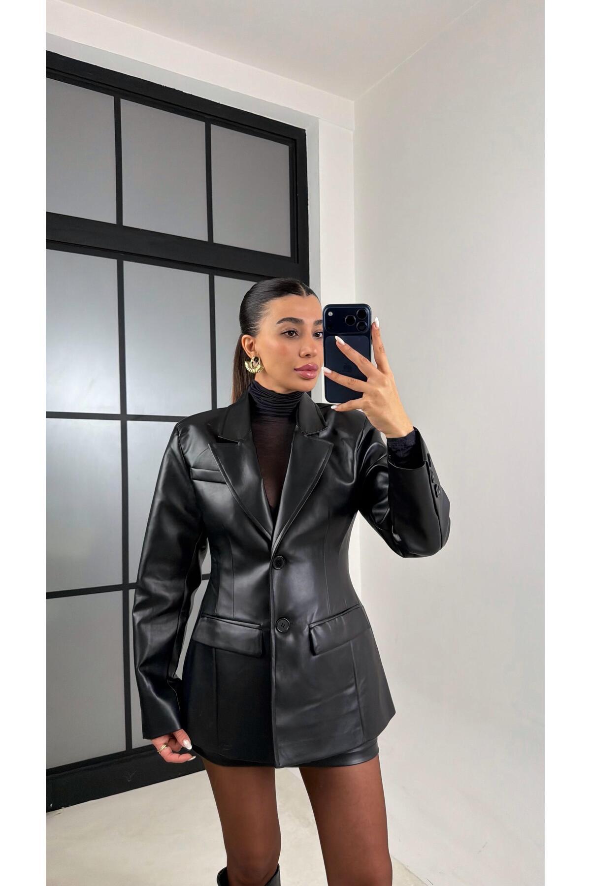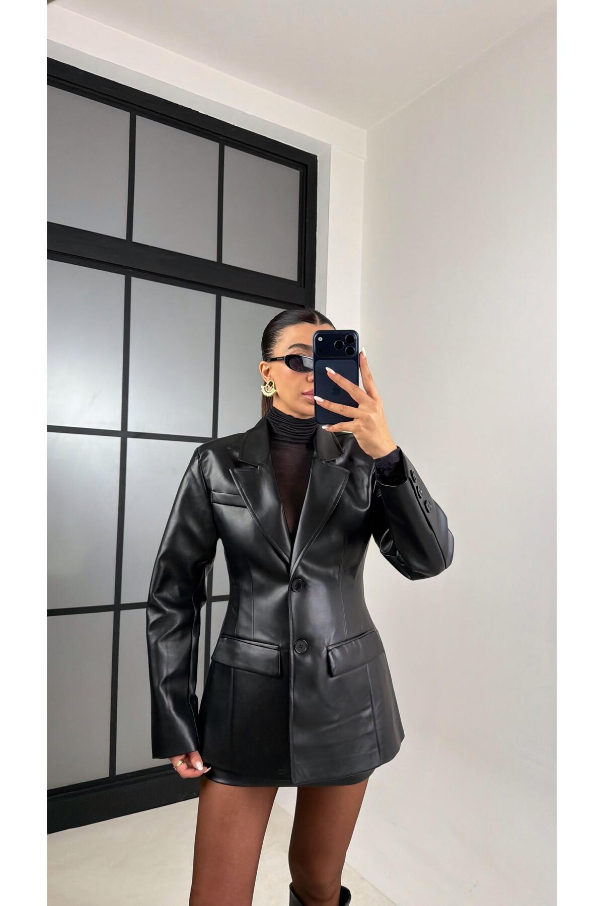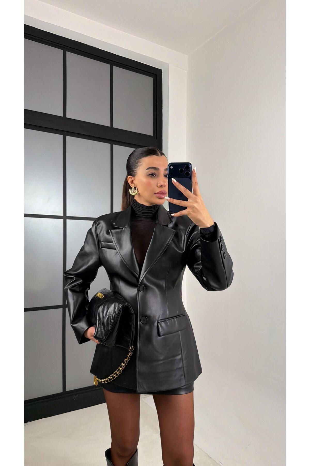 Siyah Astarlı Vatkalı Blazer Ceket Etek Premium Deri Takım GAUS-00657 Siyah Astarlı Vatkalı Blazer Ceket Etek Premium Deri Takım GAUS-00657 L