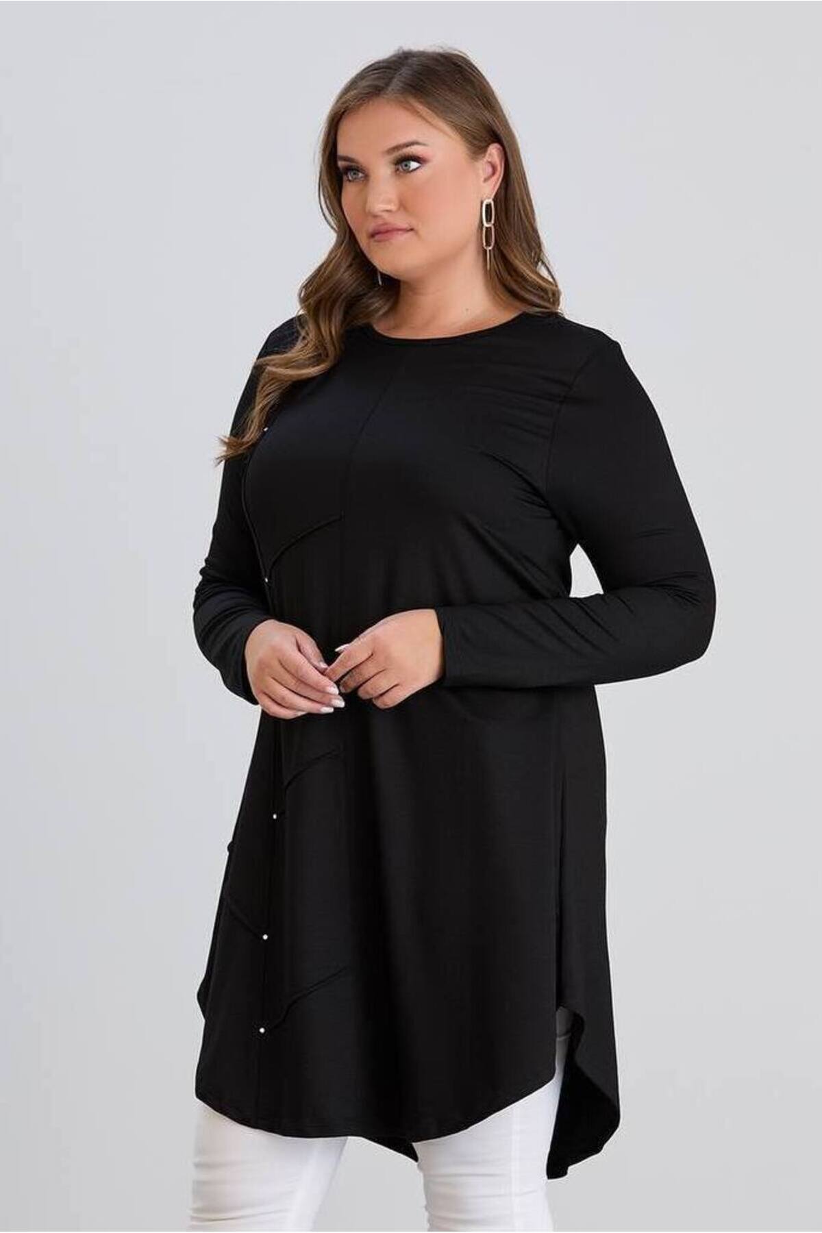 Kadın Büyük Beden Nervür Dikiş Taş Detay Uzun Kol Alt Oval Kesim Esnek Viskon Tunik Kadın Büyük Beden Nervür Dikiş Taş Detay Uzun Kol Alt Oval Kesim Esnek Viskon Tunik BT25KB453541 4XL