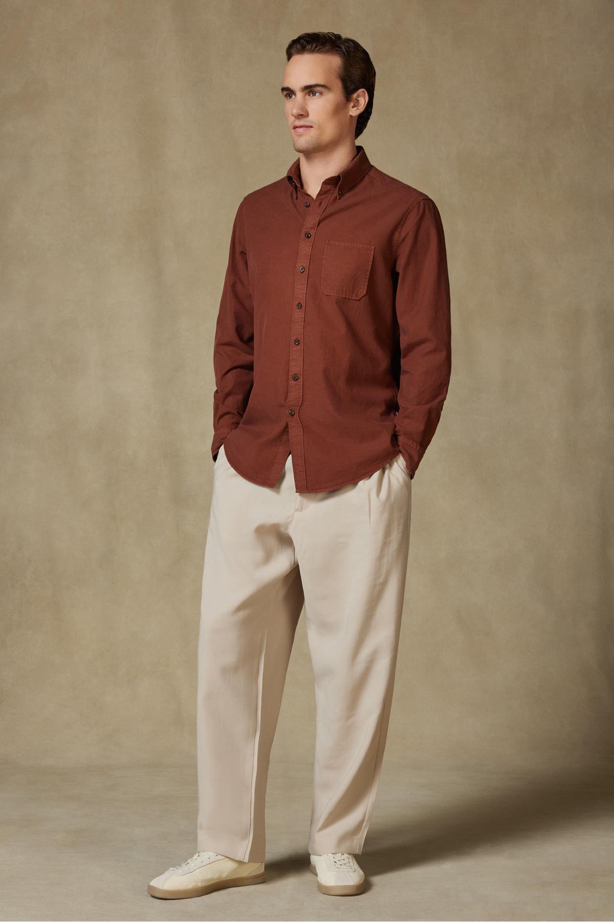 Federico Dokuma Lyocell Comfort Fit Kahverengi Düğmeli Yaka Erkek Düz Gömlek Federico Dokuma Lyocell Comfort Fit Kahverengi Düğmeli Yaka Erkek Düz Gömlek AMSH10016-001 3XL