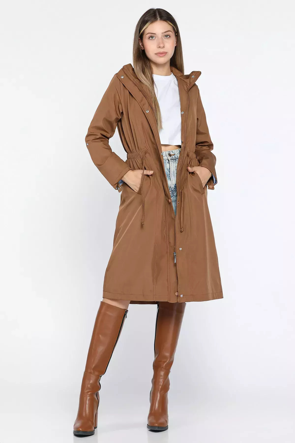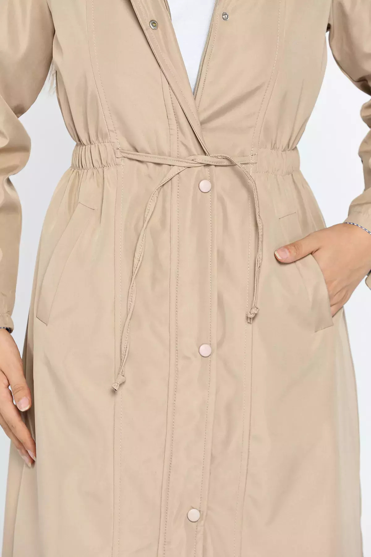 Bej Kadın Bel Bağcıklı Astarlı Slim Fit Uzun Trençkot Bej Kadın Bel Bağcıklı Astarlı Slim Fit Uzun Trençkot ZP-00005280 38