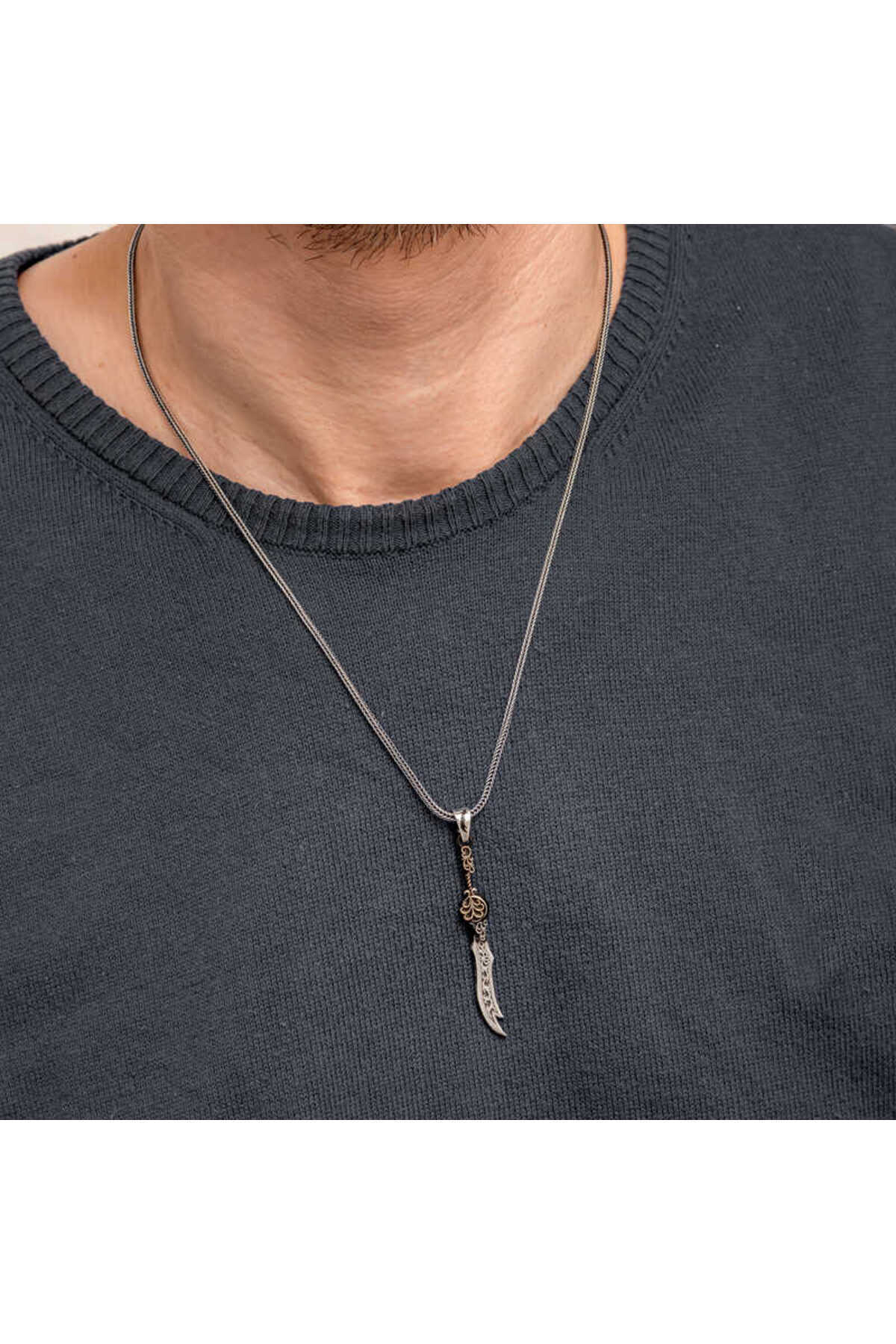 Gümüş Desenli Zülfikar Kılıcı Erkek Kolye Gümüş Desenli Zülfikar Kılıcı Erkek Kolye P128696S3223 45 cm