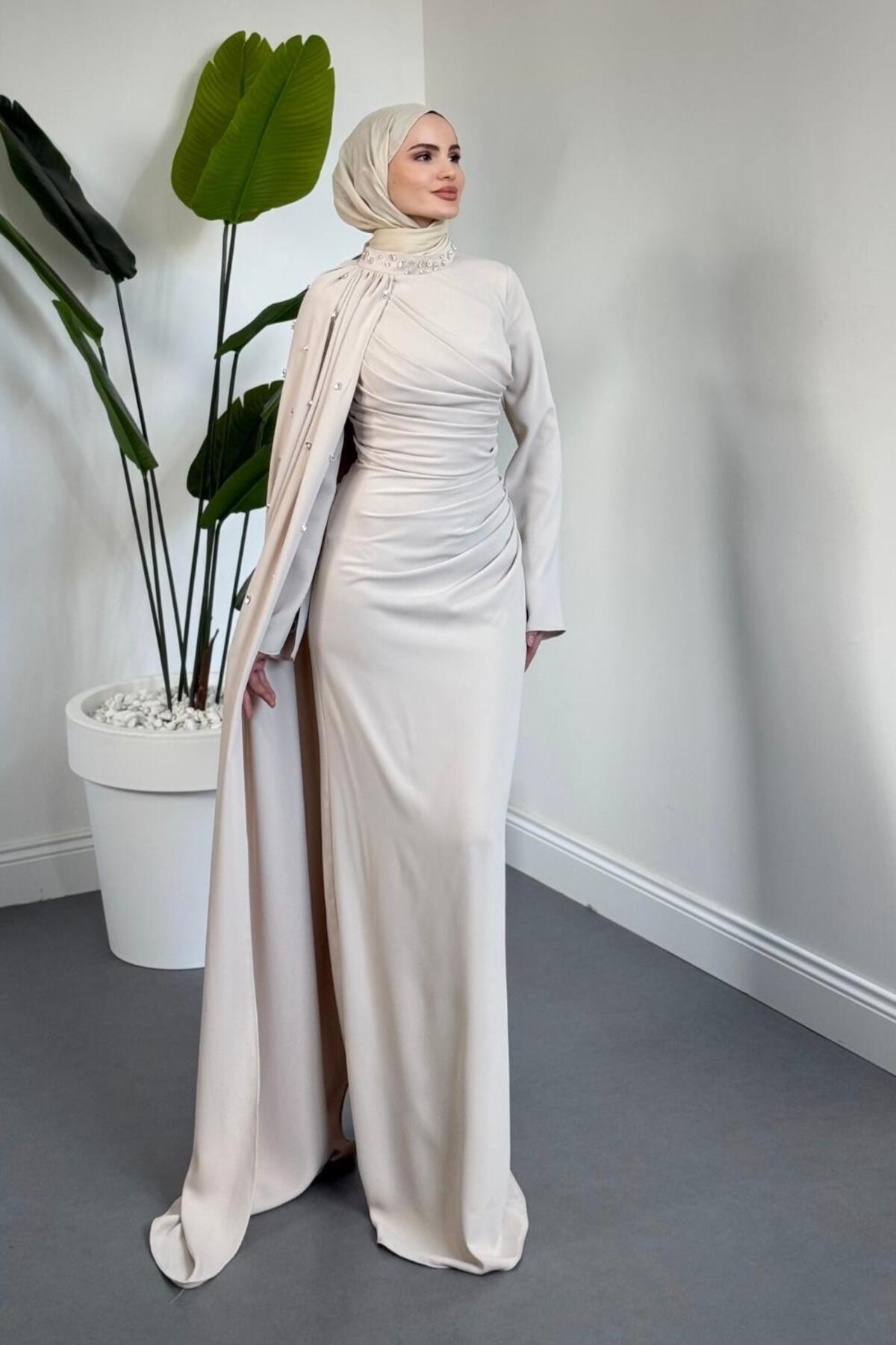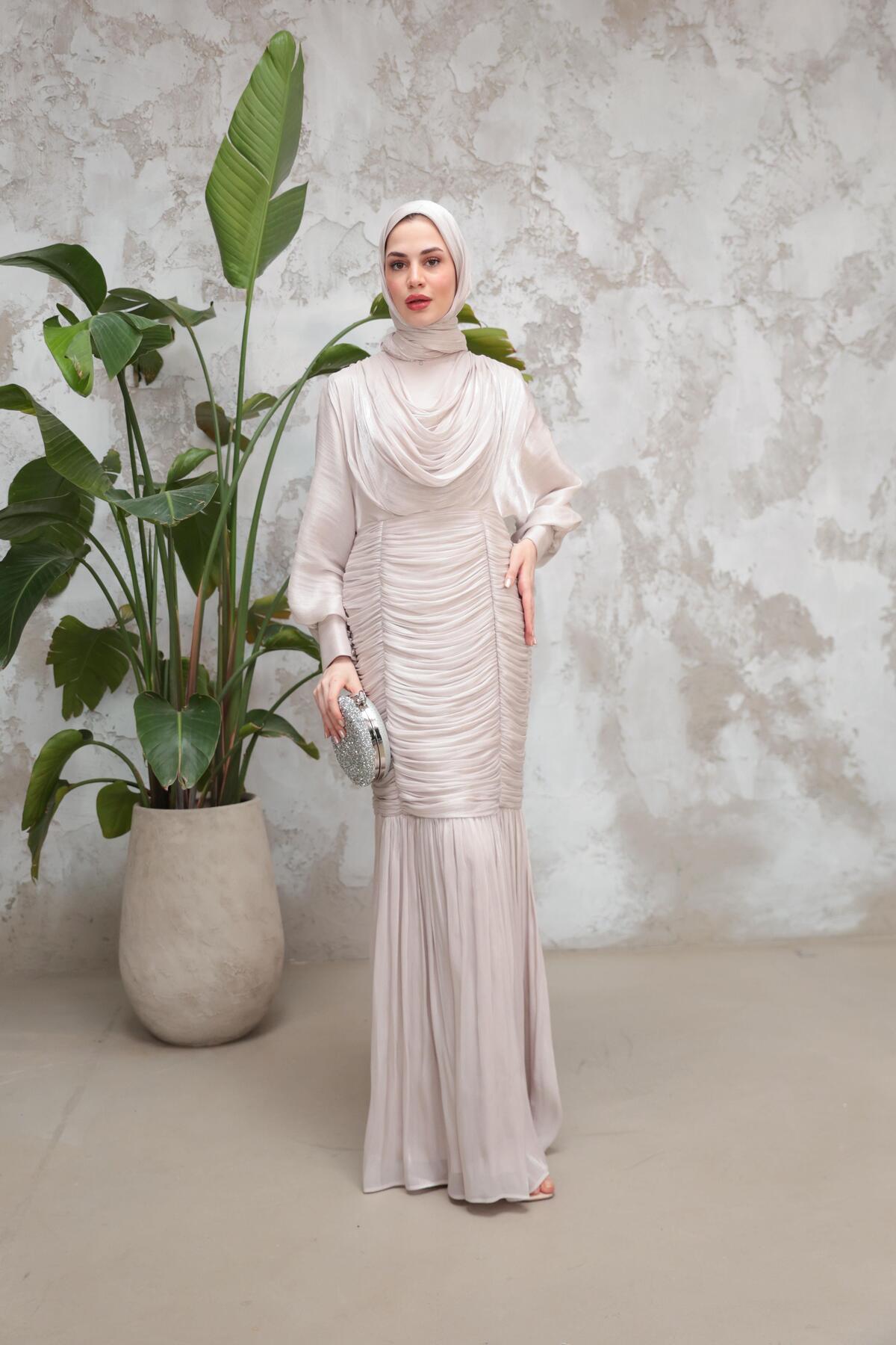 Piraye Işıltı Kumaş Abiye - Vizon Piraye Işıltı Kumaş Abiye - Vizon ABY000530 46