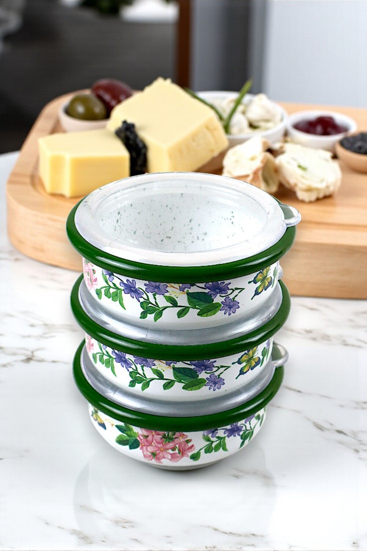 3 Parça Orta Boy,kapaklı,Desenli Emaye Kahvaltı Seti,Sunum,Kahvaltı Tabağı, Reçellik,Zeytin 3 Parça Orta Boy,kapaklı,Desenli Emaye Kahvaltı Seti,Sunum,Kahvaltı Tabağı, Reçellik,Zeytin KVS36.03 تک سایز