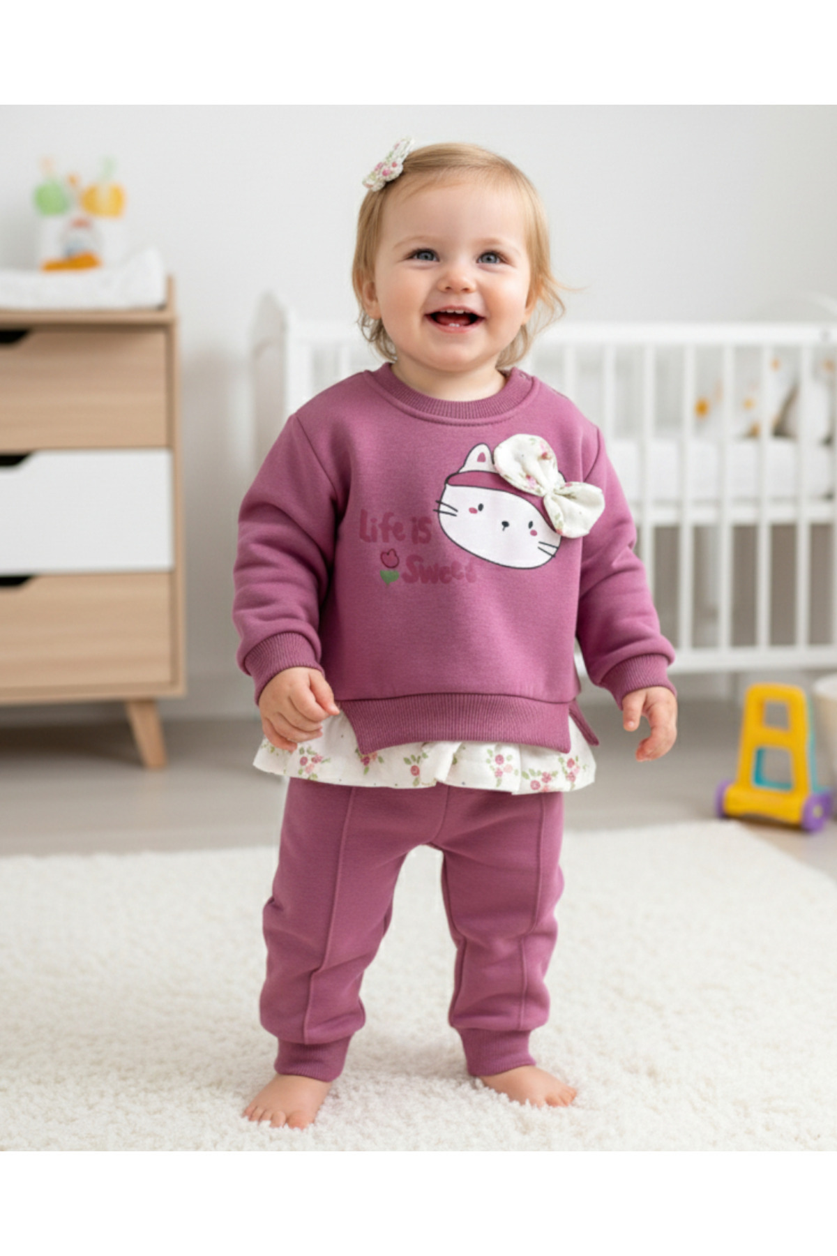 KIZ BEBEK KALIN KIŞLIK 3 İP POLARLI ŞARDONLU KEDİ BASKILI TAKIM 6-9-12-18-24AY KIZ BEBEK KALIN KIŞLIK 3 İP POLARLI ŞARDONLU KEDİ BASKILI TAKIM 6-9-12-18-24AY M85 18-24 AY