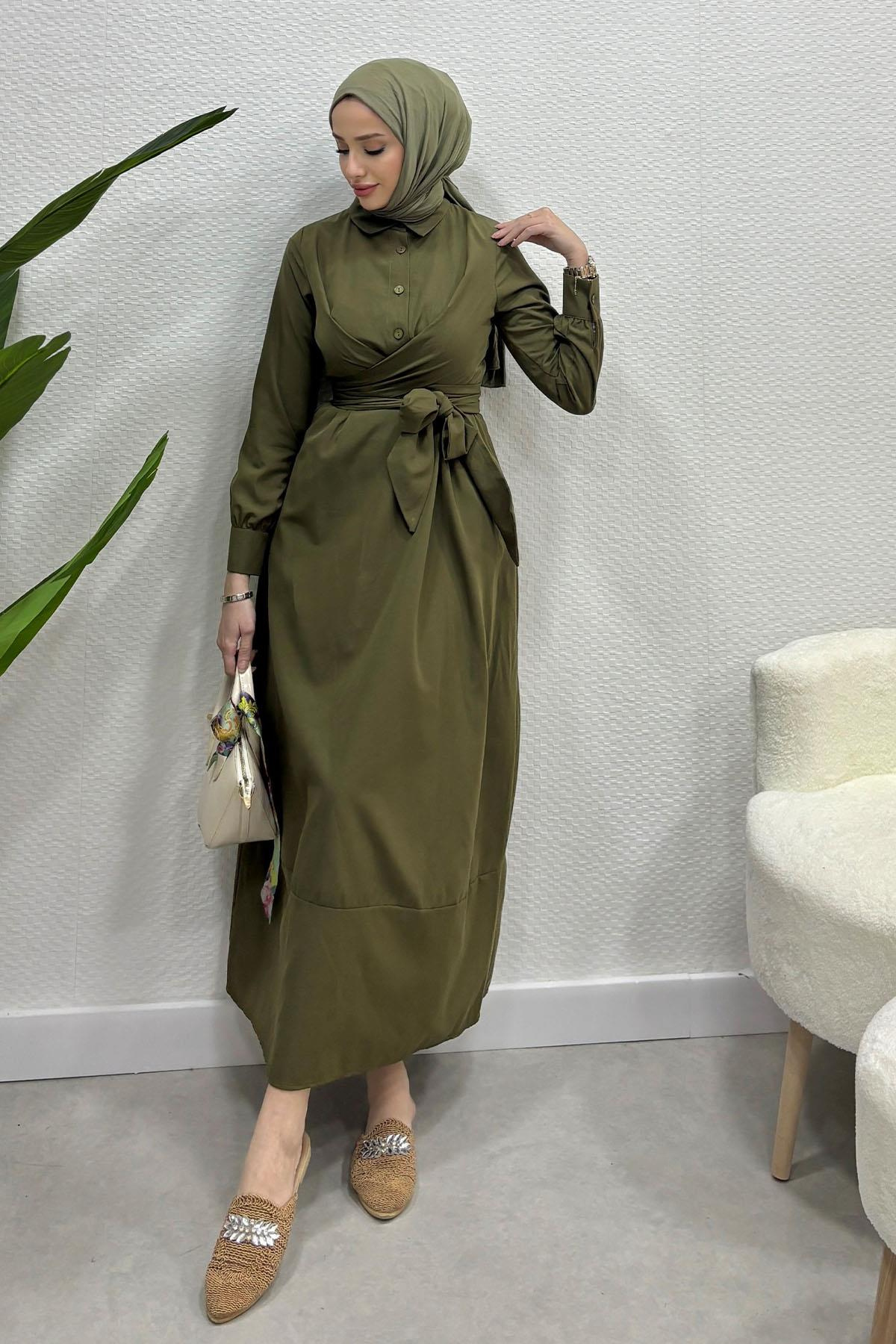 Kadın Gömlek Yaka Bağlama Detaylı Elbise Kadın Gömlek Yaka Bağlama Detaylı Elbise CRN69 44