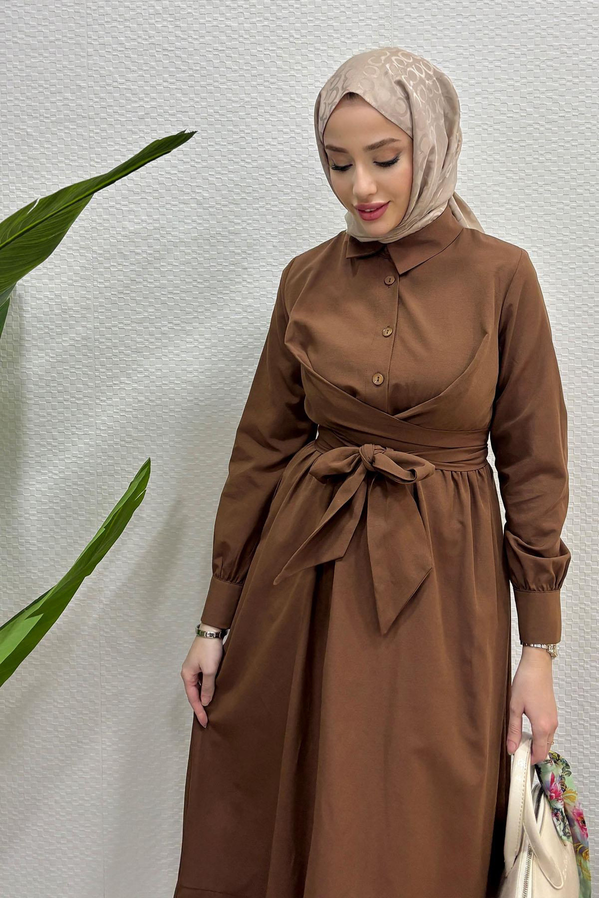 Kadın Gömlek Yaka Bağlama Detaylı Elbise Kadın Gömlek Yaka Bağlama Detaylı Elbise CRN69 44