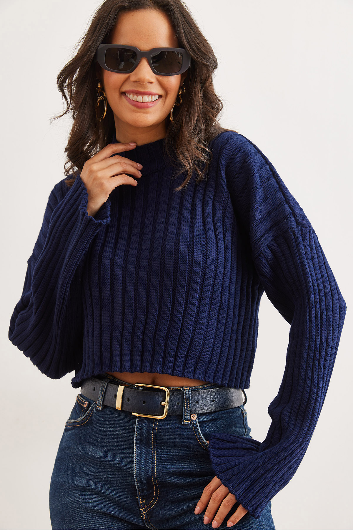 Kadın Saks Mavi Dalga Örgüllü Crop Triko Kazak KZK-19000822 Kadın Saks Mavi Dalga Örgüllü Crop Triko Kazak KZK-19000822 S/M