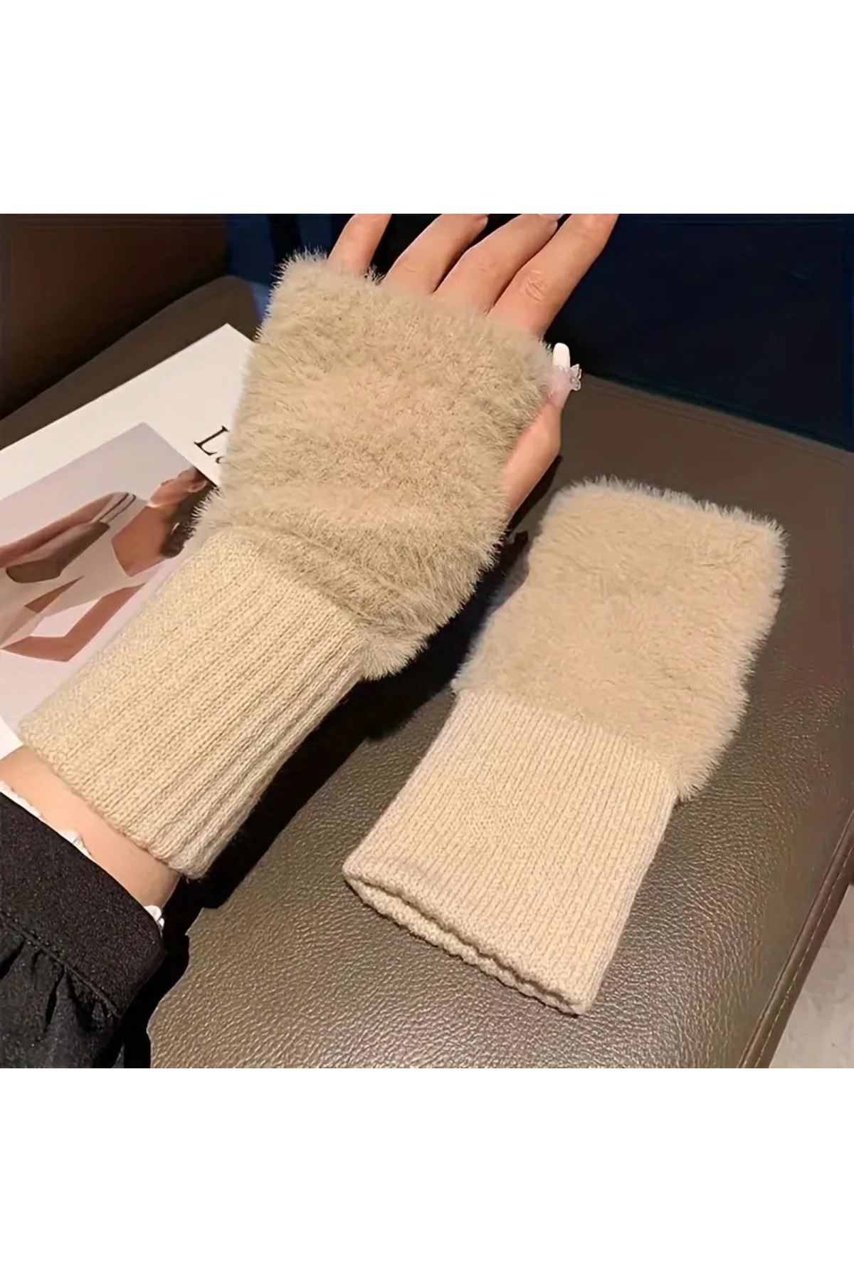 Kadın Kürk Detaylı Kesik Parmaksız Eldiven Yumuşak Dokulu Kışlık Model Faux Soft Peluş Eldiven Kadın Kürk Detaylı Kesik Parmaksız Eldiven Yumuşak Dokulu Kışlık Model Faux Soft Peluş Eldiven DE00058 تک سایز