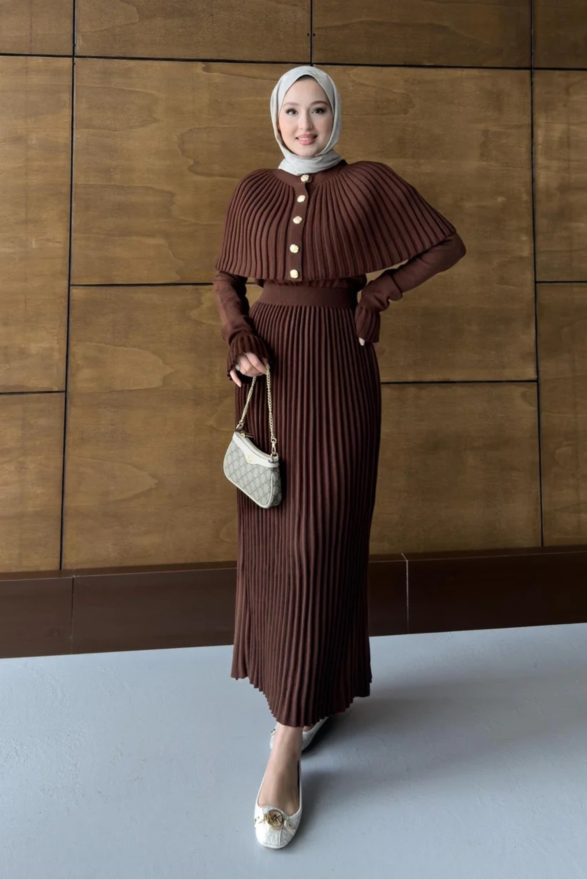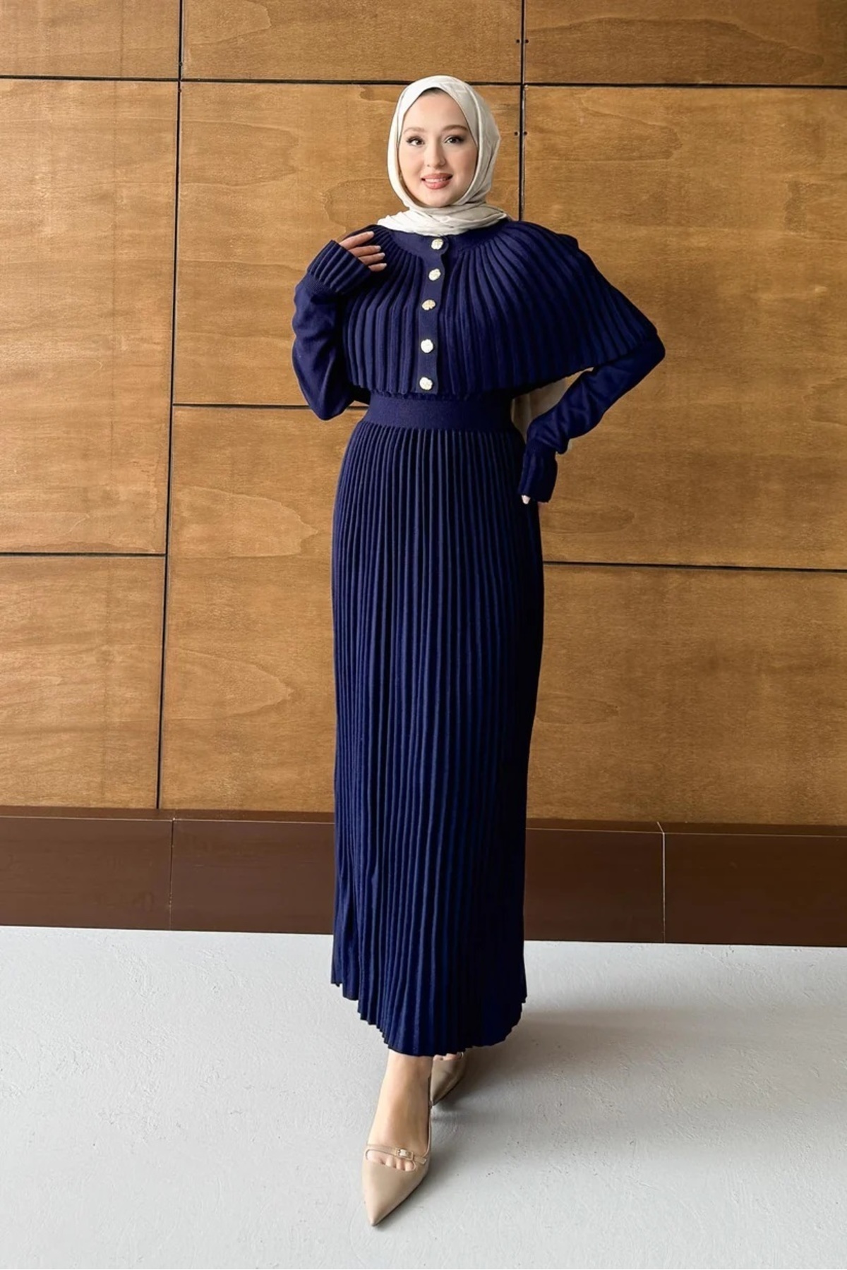 Kadın Pliseli Triko Panço Elbise Takım Kadın Pliseli Triko Panço Elbise Takım luz4001 Standart