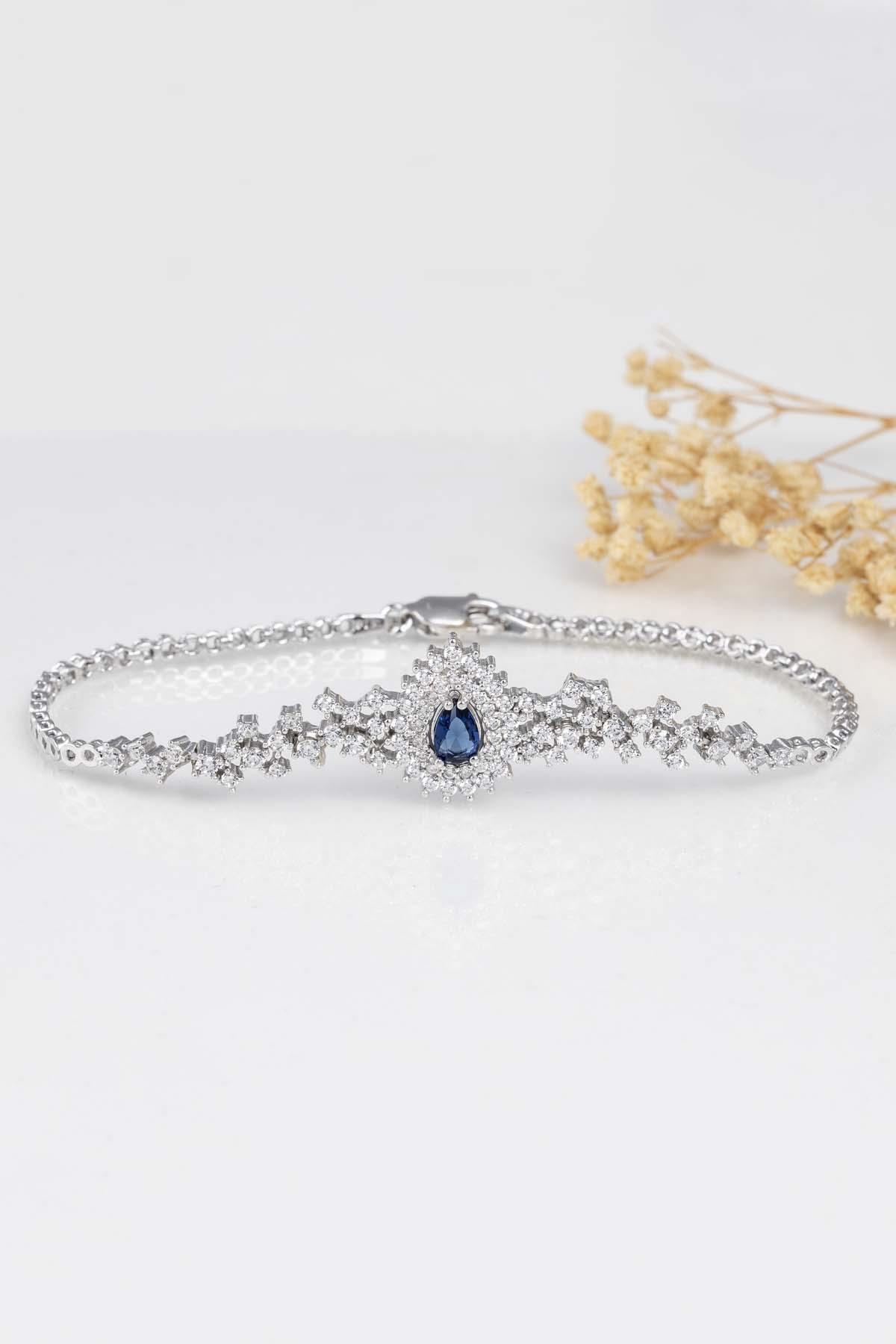 Hürrem Sultan Modeli Safir Taşllı Damla Motifli 925 Ayar Gümüş Bileklik Hürrem Sultan Modeli Safir Taşllı Damla Motifli 925 Ayar Gümüş Bileklik KGDS1494BLK 18 - 21