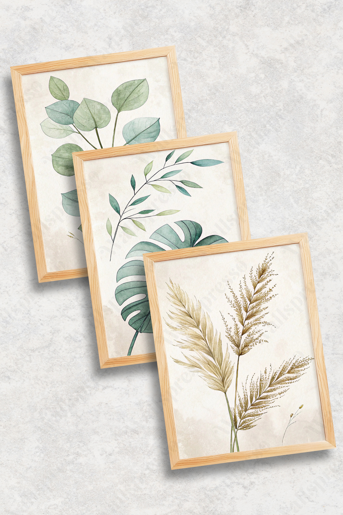 Bohem Yapraklar Minimalist 3'lü Tablo - Ahşap Çerçeveli Tablo -Duvar Tablosu-Salon Yatak Odası Tablo Bohem Yapraklar Minimalist 3'lü Tablo - Ahşap Çerçeveli Tablo -Duvar Tablosu-Salon Yatak Odası Tablo 3CCT057 50 x 70