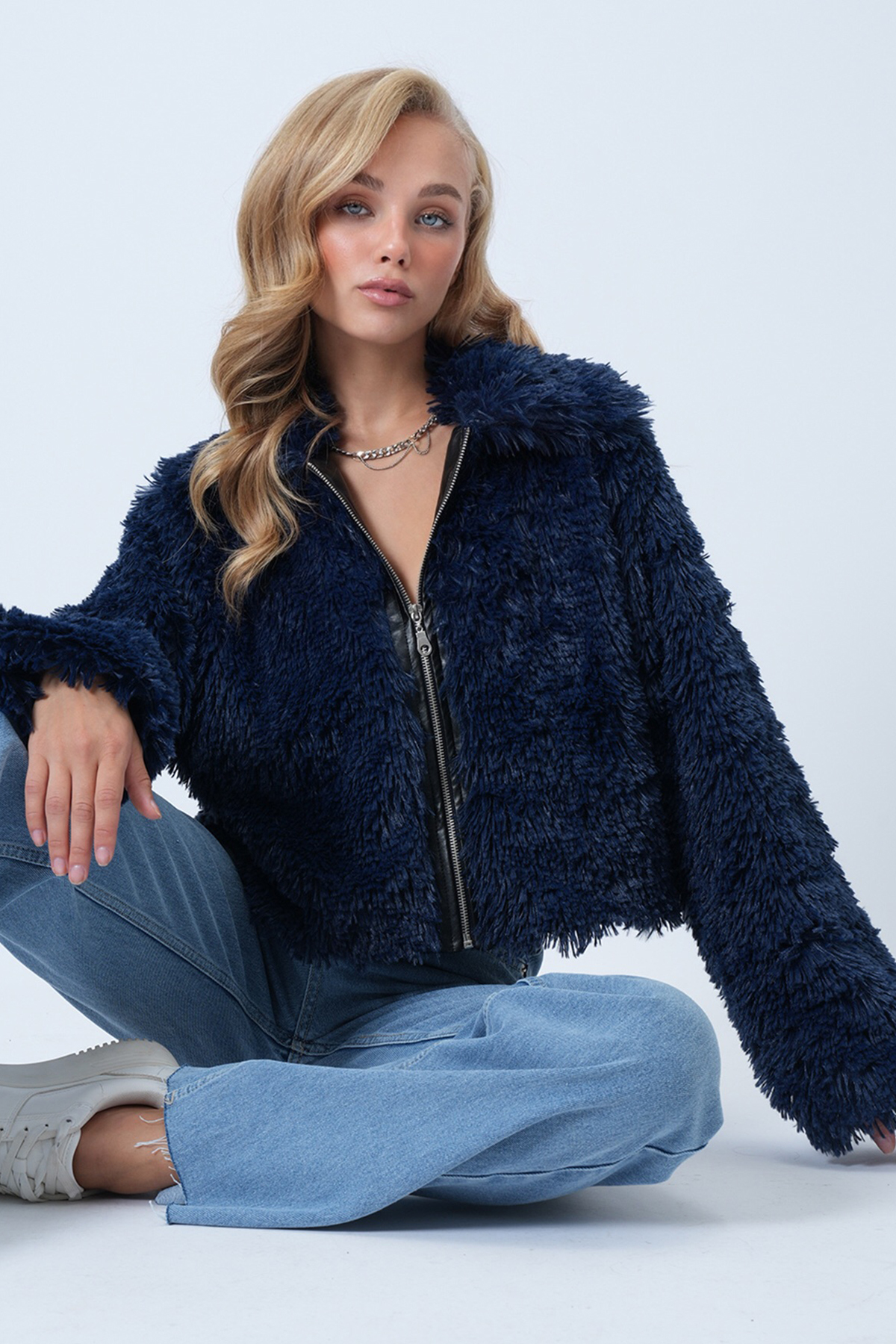 Doop Lacivert Peluş Yaka Kot Ceket Doop Lacivert Peluş Yaka Kot Ceket 6524LCV 42