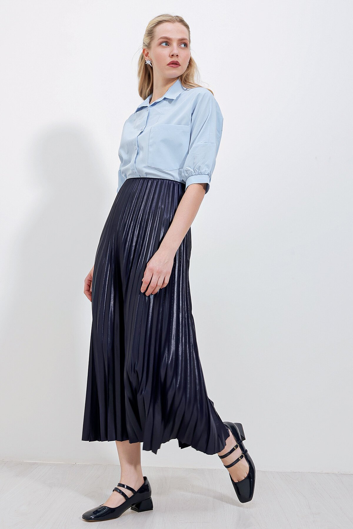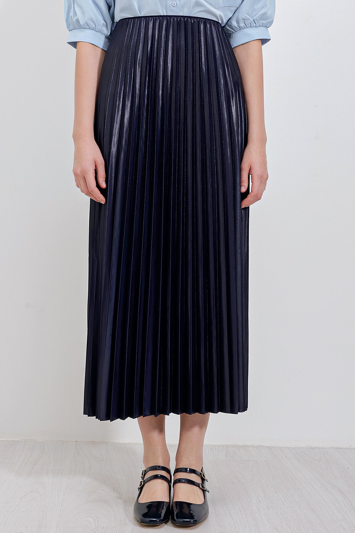 Deri Görünümlü Piliseli Etek - Lacivert Deri Görünümlü Piliseli Etek - Lacivert 8009 Standart