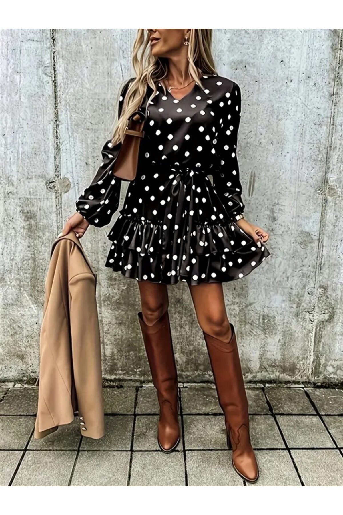 Yeni Sezon Günlük Şık Kadın Uzun Kollu V Yaka Desenli Kısa Keten Elbise Yeni Sezon Günlük Şık Kadın Uzun Kollu V Yaka Desenli Kısa Keten Elbise J-175523-MN 2XL/3XL
