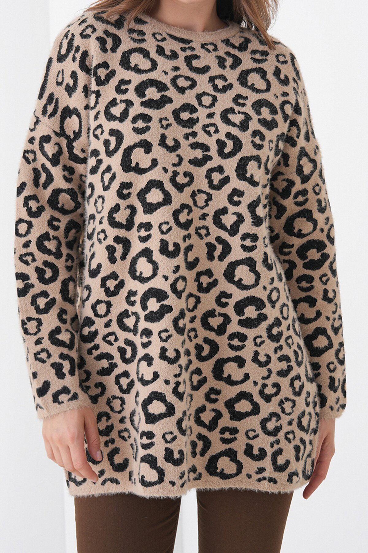 Kadın Bej Leopar Desenli Bisiklet Yaka Yumoş Triko Kazak Vs01448 Kadın Bej Leopar Desenli Bisiklet Yaka Yumoş Triko Kazak Vs01448 VS01448 Standart