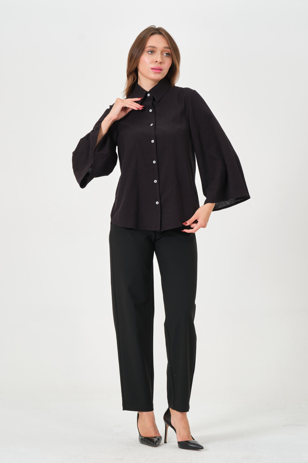 Büyük Beden Yüksek Bel Pileli Siyah Kumaş Pantolon Kadın Büyük Beden Yüksek Bel Pileli Siyah Kumaş Pantolon Kadın p4-k5 9XL