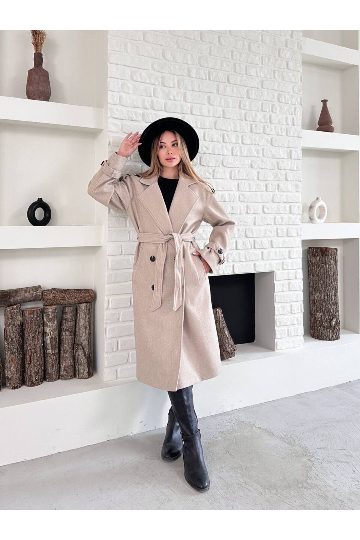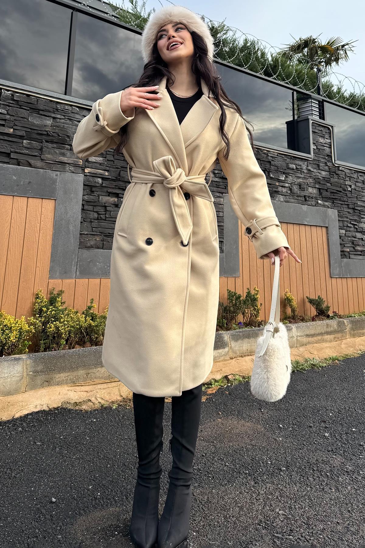 Kadın Kaşe Kaban Uzun Kuşaklı Düğmeli Premium Kaliteli Yeni Sezon Kadın Kaşe Kaban Uzun Kuşaklı Düğmeli Premium Kaliteli Yeni Sezon 889562 L