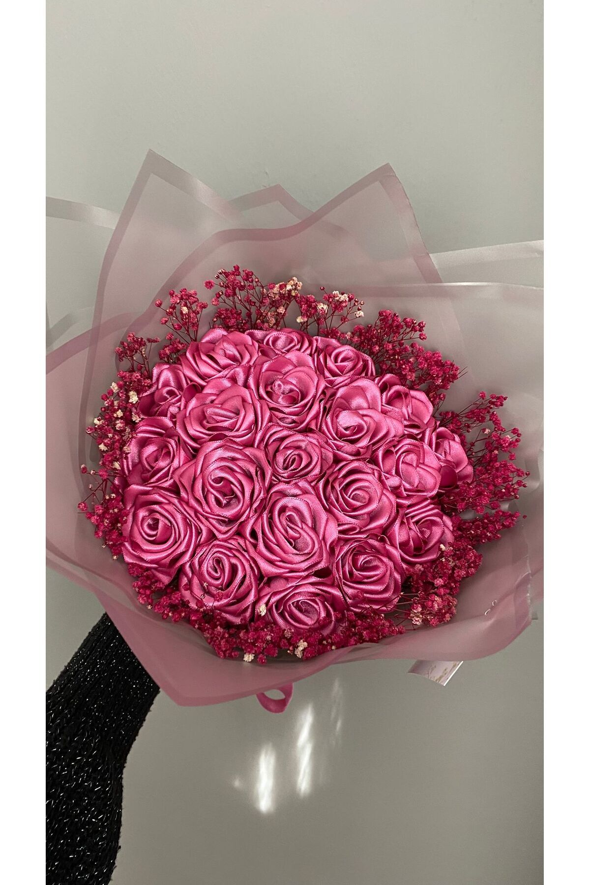 20'li Koyu Pembe Cipsolu Solmayan Saten Gül Buketi, Sevgiliye, Anneye Hediye 20'li Koyu Pembe Cipsolu Solmayan Saten Gül Buketi, Sevgiliye, Anneye Hediye SSG-KP-041 تک سایز
