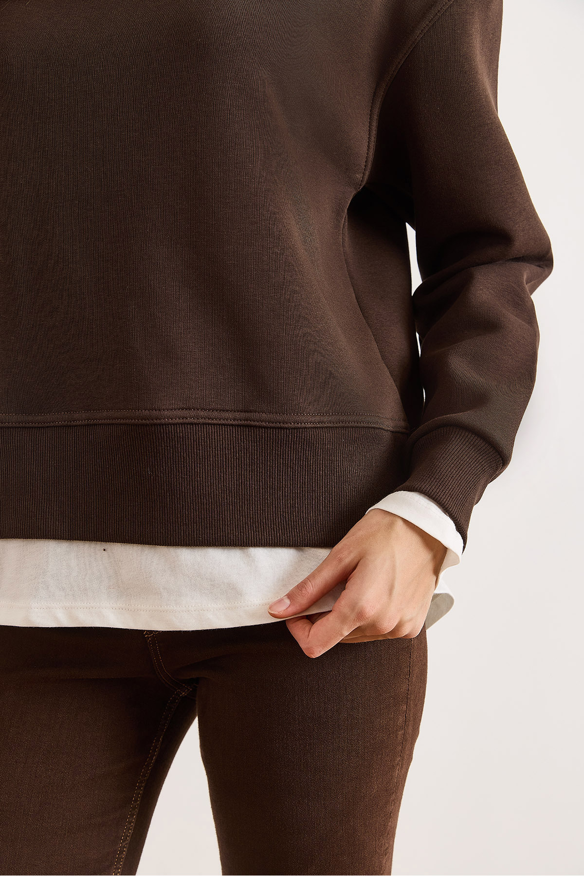 Kadın Kahverengi Penye Detaylı Şardonlu Kalın Sweatshirt SWT-19000768 Kadın Kahverengi Penye Detaylı Şardonlu Kalın Sweatshirt SWT-19000768 L