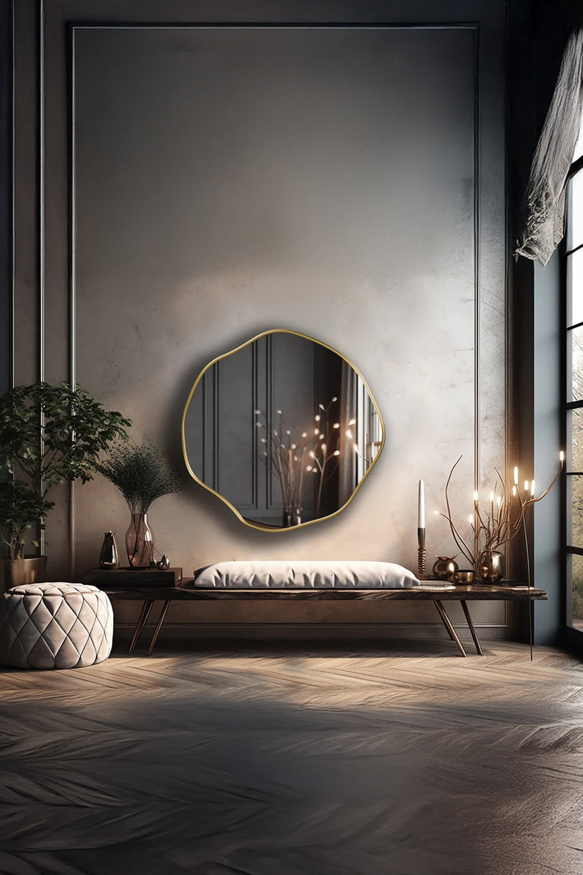 Premium Asimetrik Yuvarlak Ahşap Çerçeveli Dekoratif Ayna Dresuar Aynası – Zarif Duvar Aynası Premium Asimetrik Yuvarlak Ahşap Çerçeveli Dekoratif Ayna Dresuar Aynası – Zarif Duvar Aynası AsmiroAyna 80 x 80