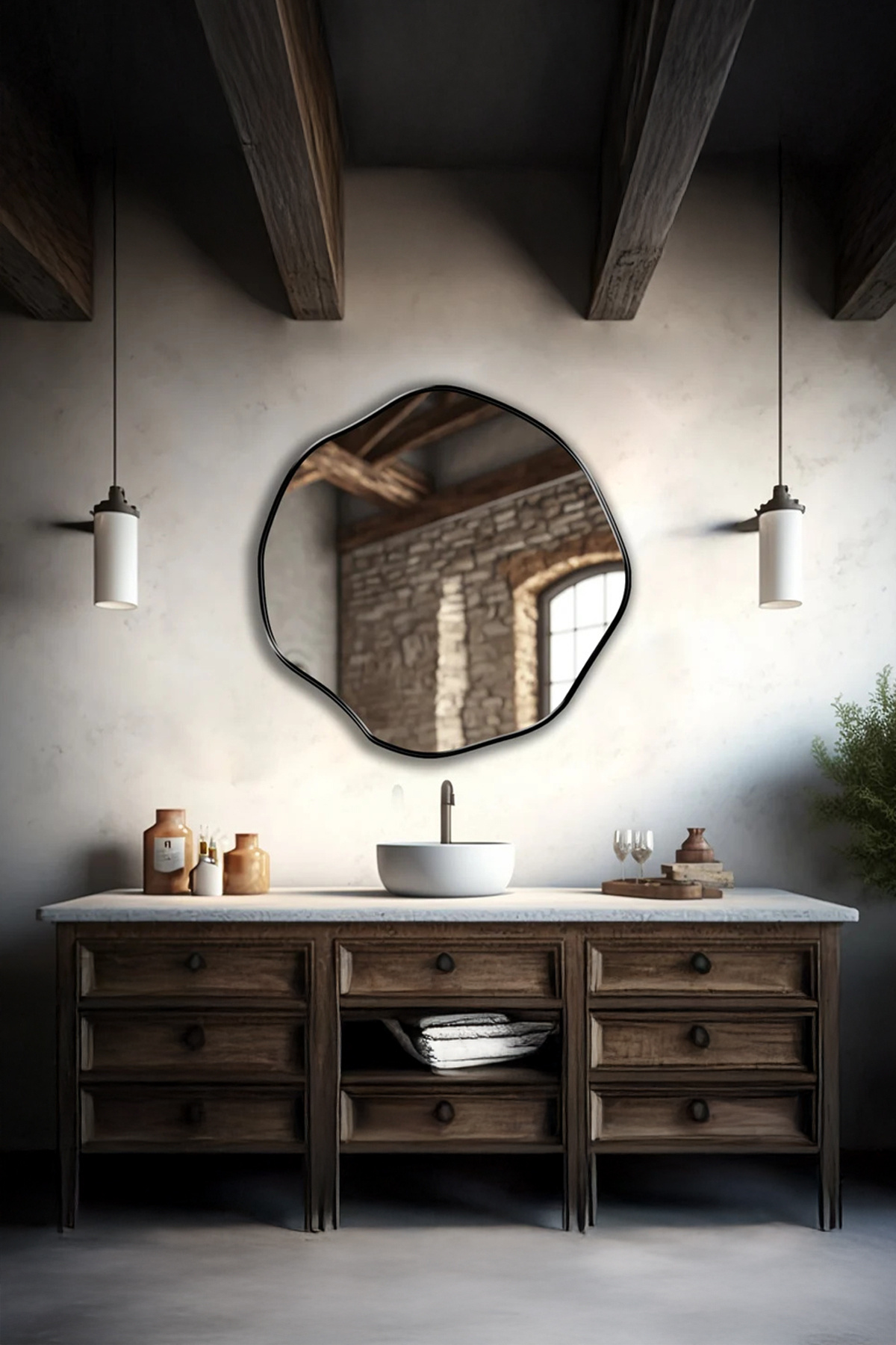 Premium Asimetrik Yuvarlak Ahşap Çerçeveli Dekoratif Ayna Dresuar Aynası – Zarif Duvar Aynası Premium Asimetrik Yuvarlak Ahşap Çerçeveli Dekoratif Ayna Dresuar Aynası – Zarif Duvar Aynası AsmiroAyna 80 x 80