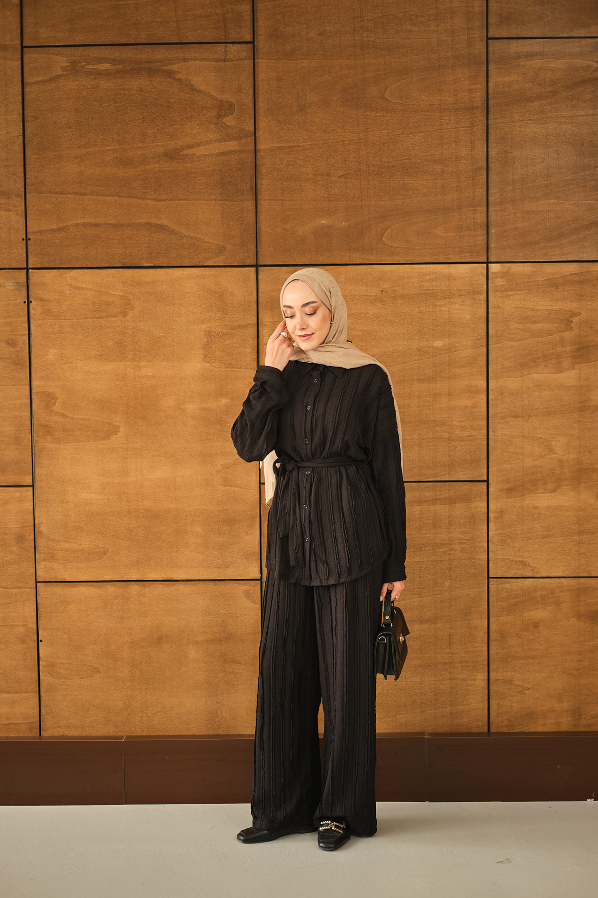 Kadın Büzgülü İkili Takım Siyah Kadın Büzgülü İkili Takım Siyah 283-8940 L/XL
