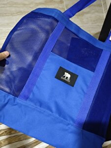 Unisex Mavi Cepli File Plaj Çantası Unisex Mavi Cepli File Plaj Çantası FLC-207 تک سایز