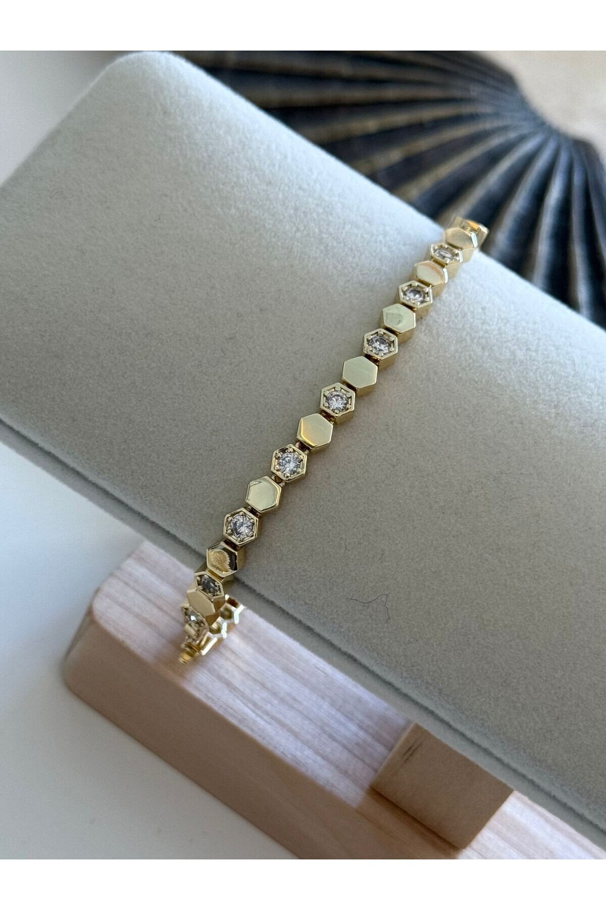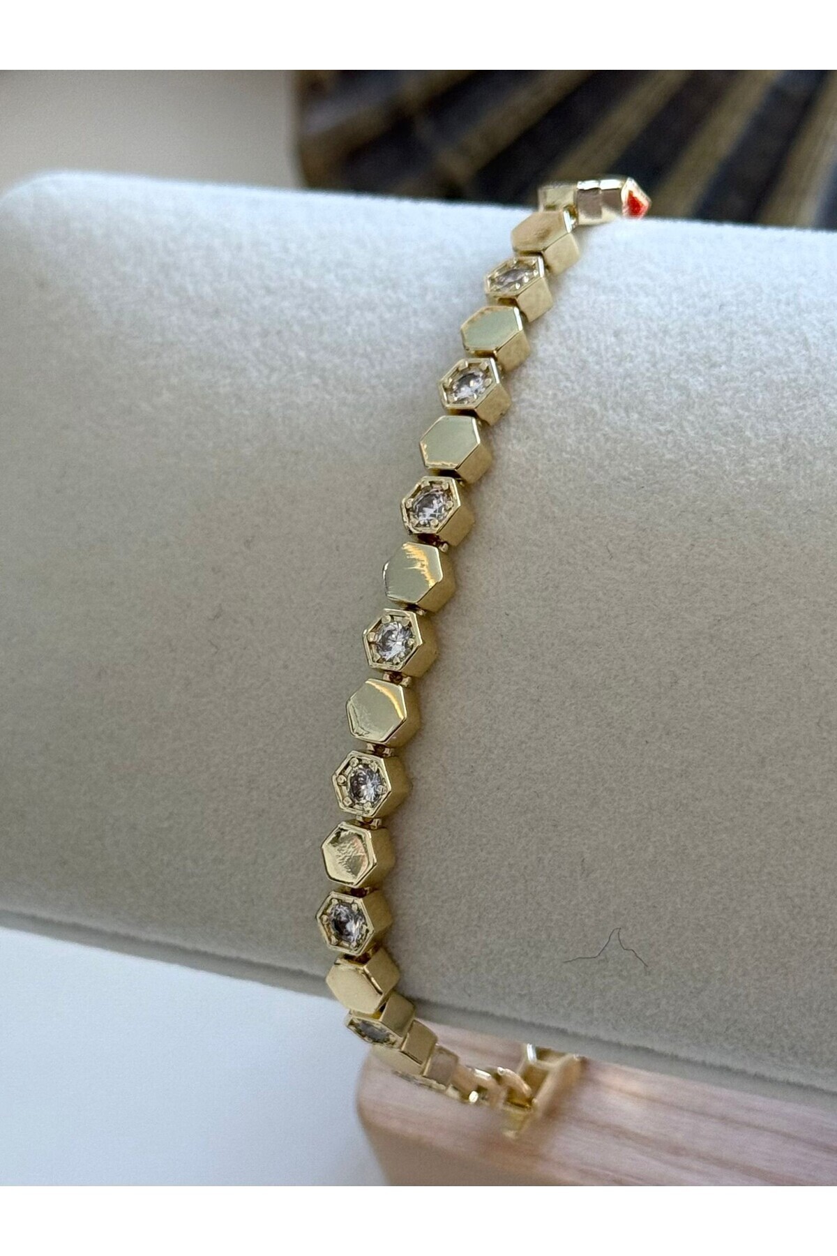 14K Altın Kaplama Zirkon Taş ve Sıralı Küp Plaka Deatylı Unisex Bileklik 14K Altın Kaplama Zirkon Taş ve Sıralı Küp Plaka Deatylı Unisex Bileklik Myl0000015368 Standart
