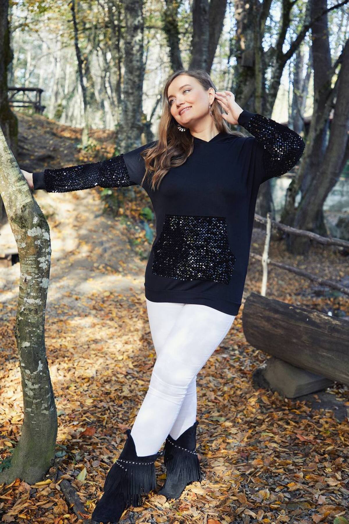 Pul Payet Detaylı Büyük Beden Kadın Tunik Sweatshirt Pul Payet Detaylı Büyük Beden Kadın Tunik Sweatshirt 52-371 5XL