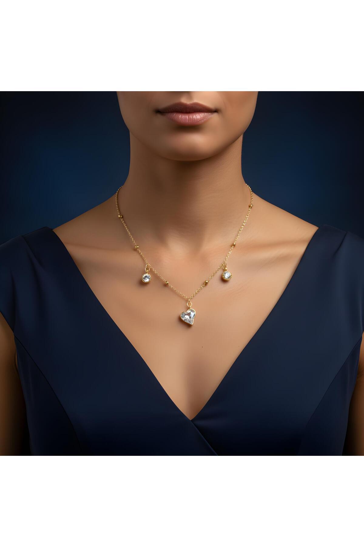 Yüzde Yüz Çelik Zincirli Altın Kaplama Zirkon Taşlı Kolye Yüzde Yüz Çelik Zincirli Altın Kaplama Zirkon Taşlı Kolye UTQY--YY100ZRKN 44 cm